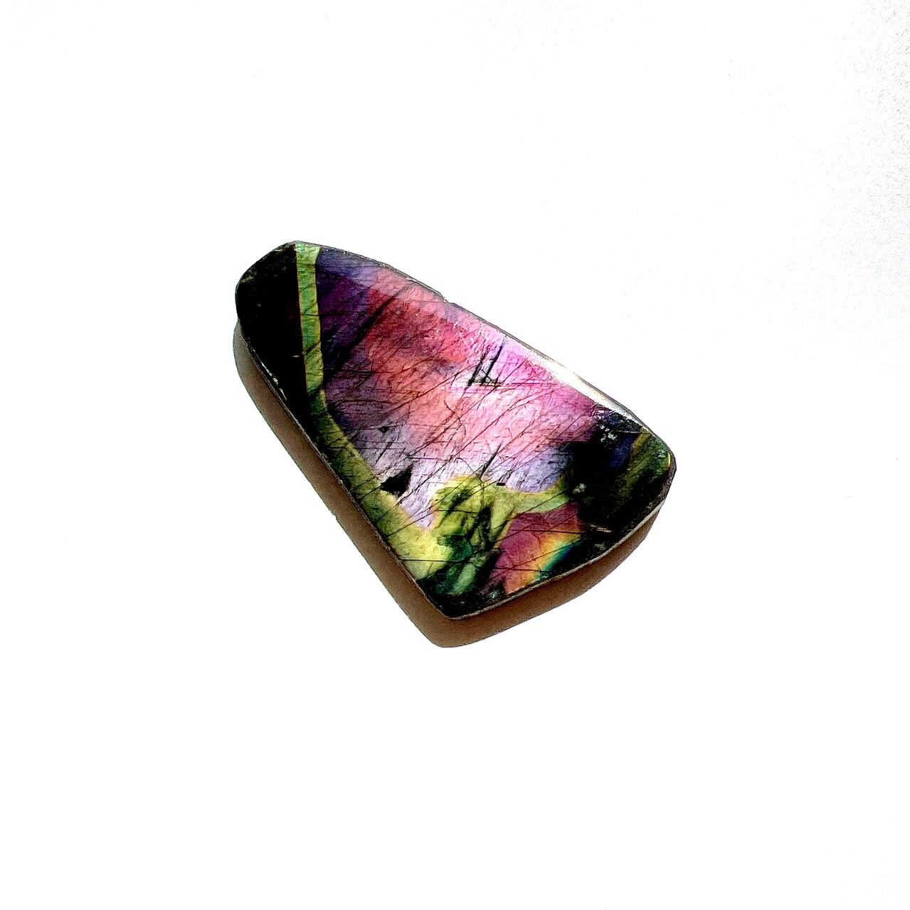 見る角度によって、玉虫色のように美しく輝く、スペクトロライト片面磨き①です。