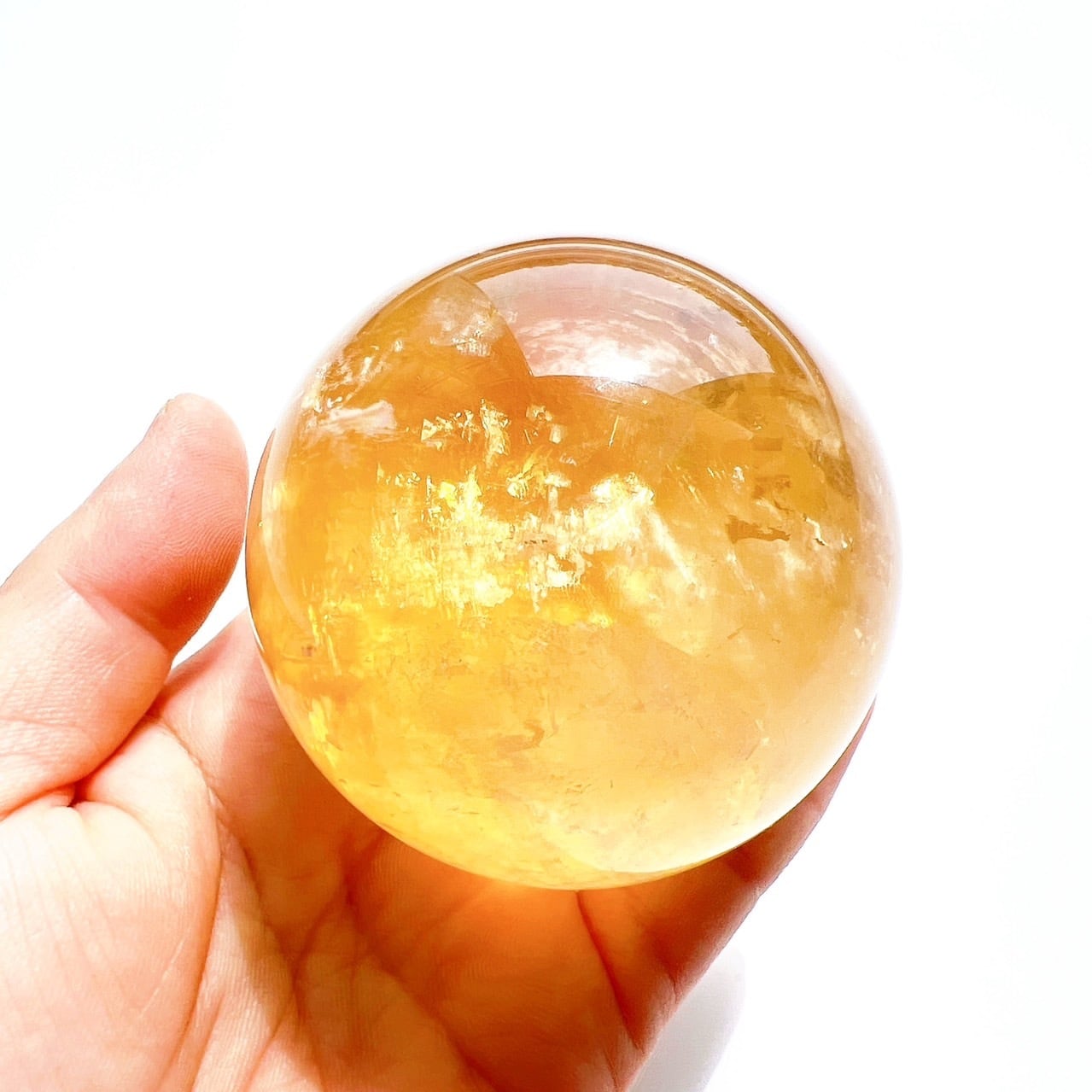 はちみつのような深いオレンジ色のゴールデンカルサイト球①です。
