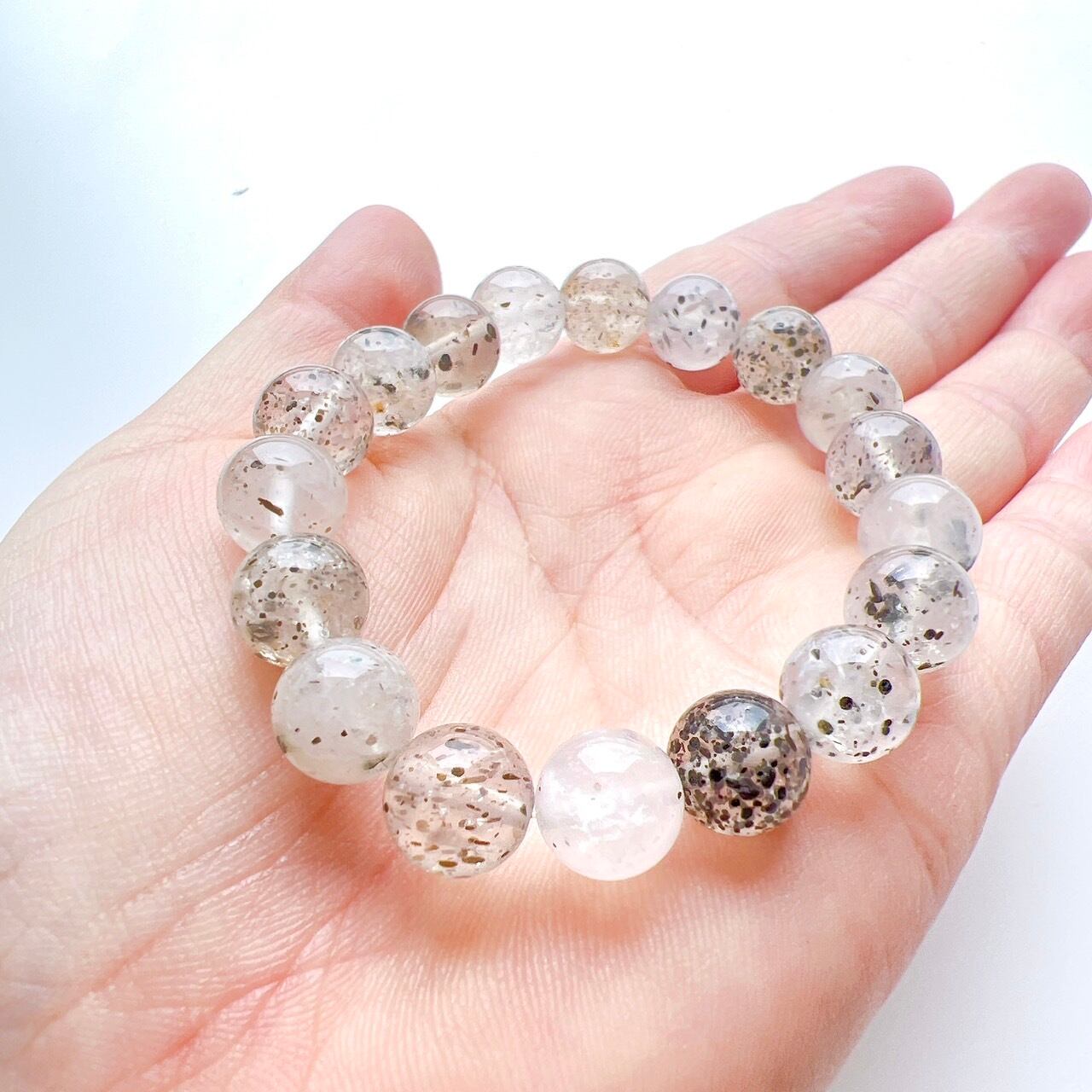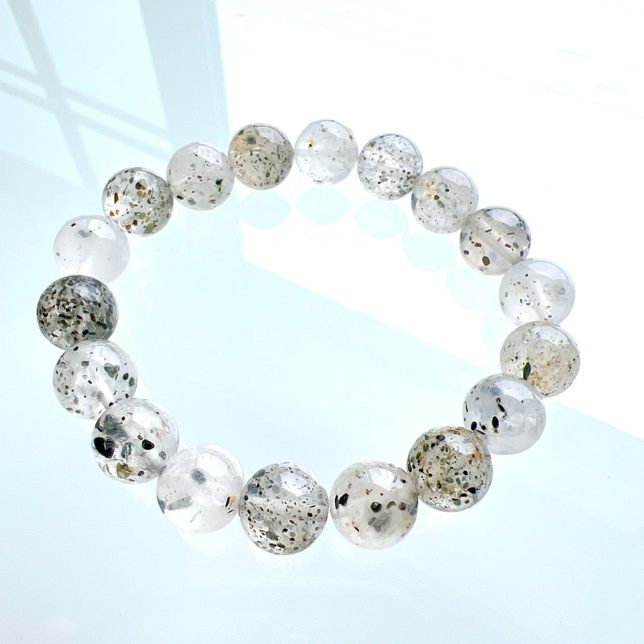 水晶の中にマイカが入った、タンザニアマイカインクォーツ10㎜ブレスレットです。