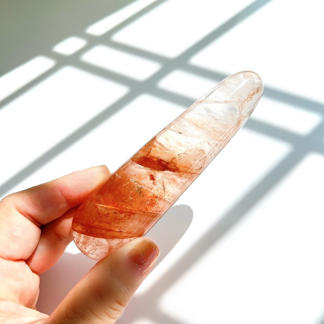 色もとても表情豊かで個性的なクリスタルです。ツボを押したり、ヒーリングにも使えます。