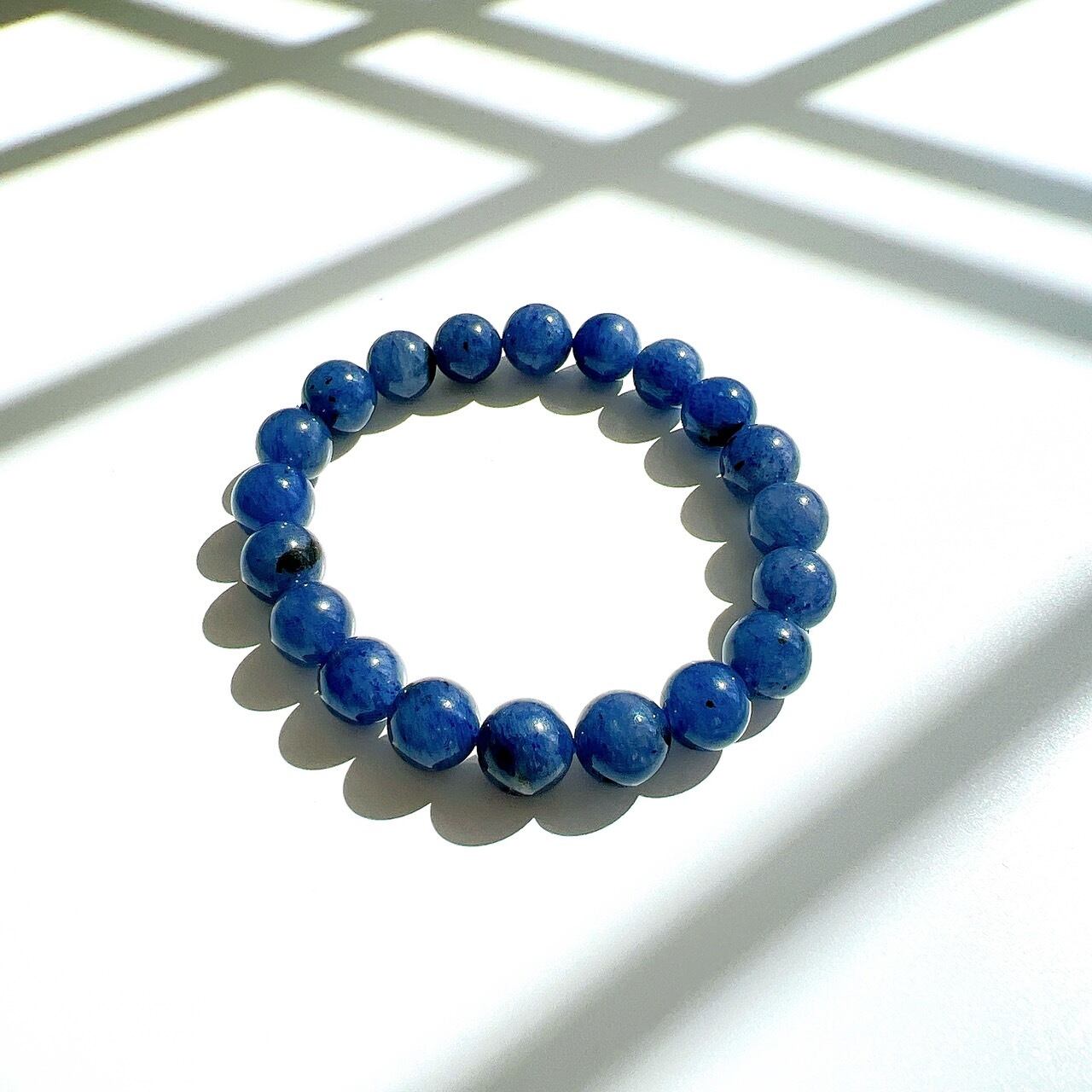 こちらのブレスレットは、デュモルチェライトインクォーツが多く含まれています。