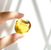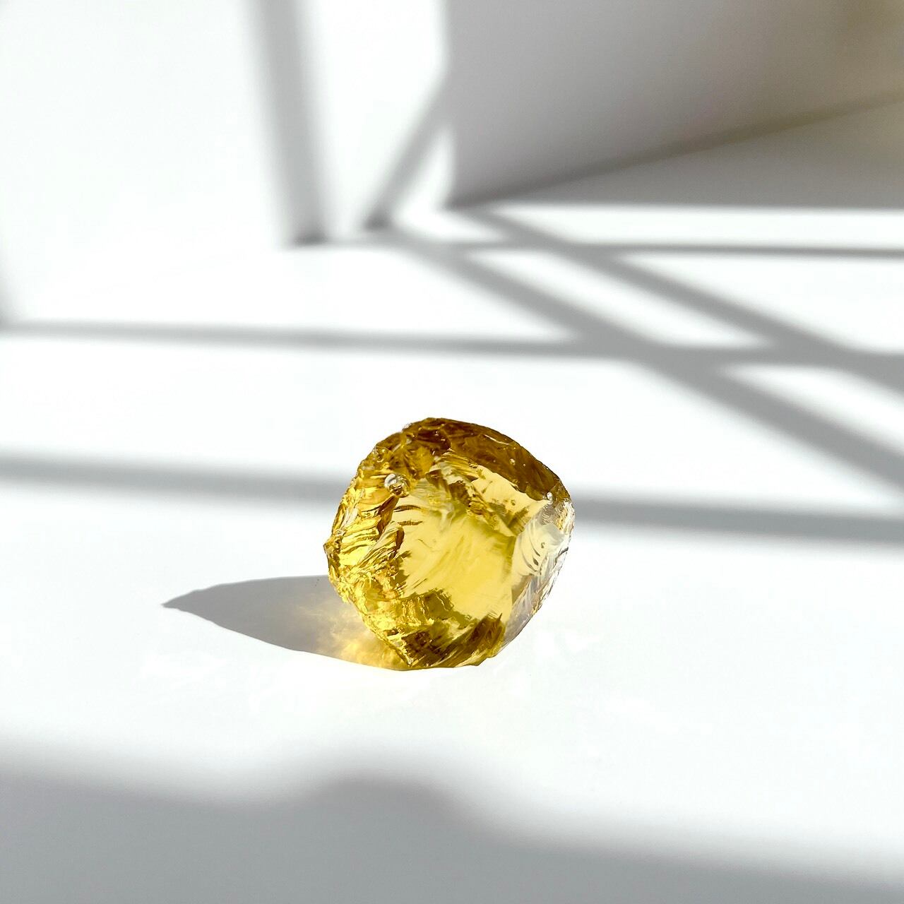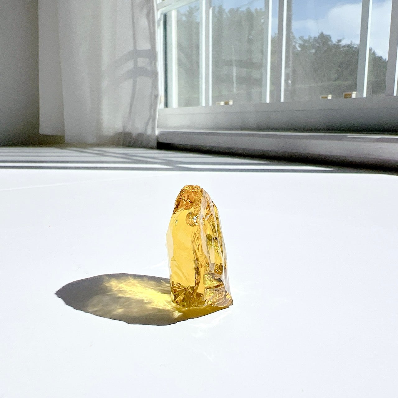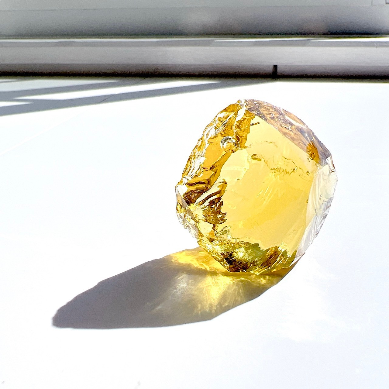 鮮やかなイエローが美しいアンダラクリスタルです。気泡もみられます。