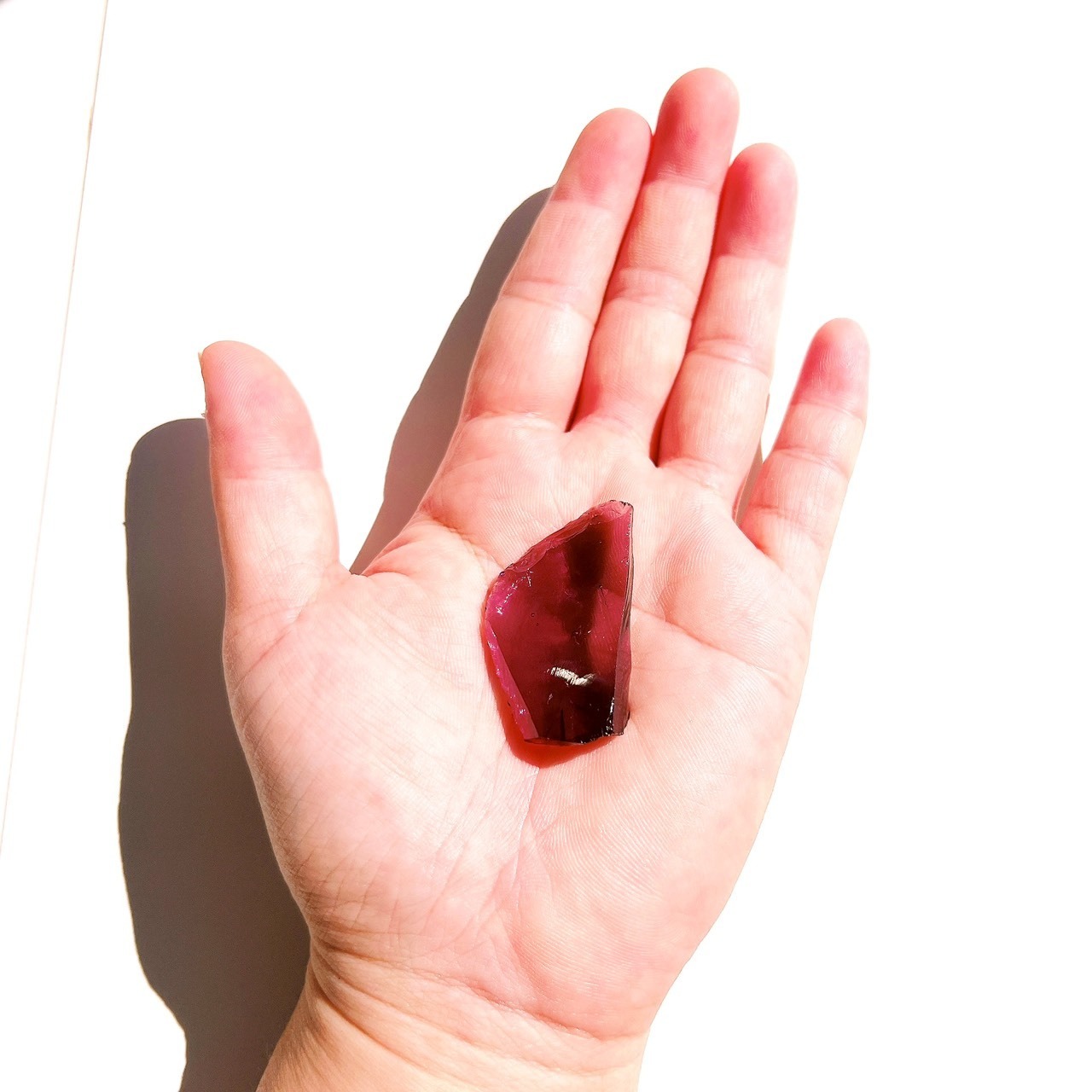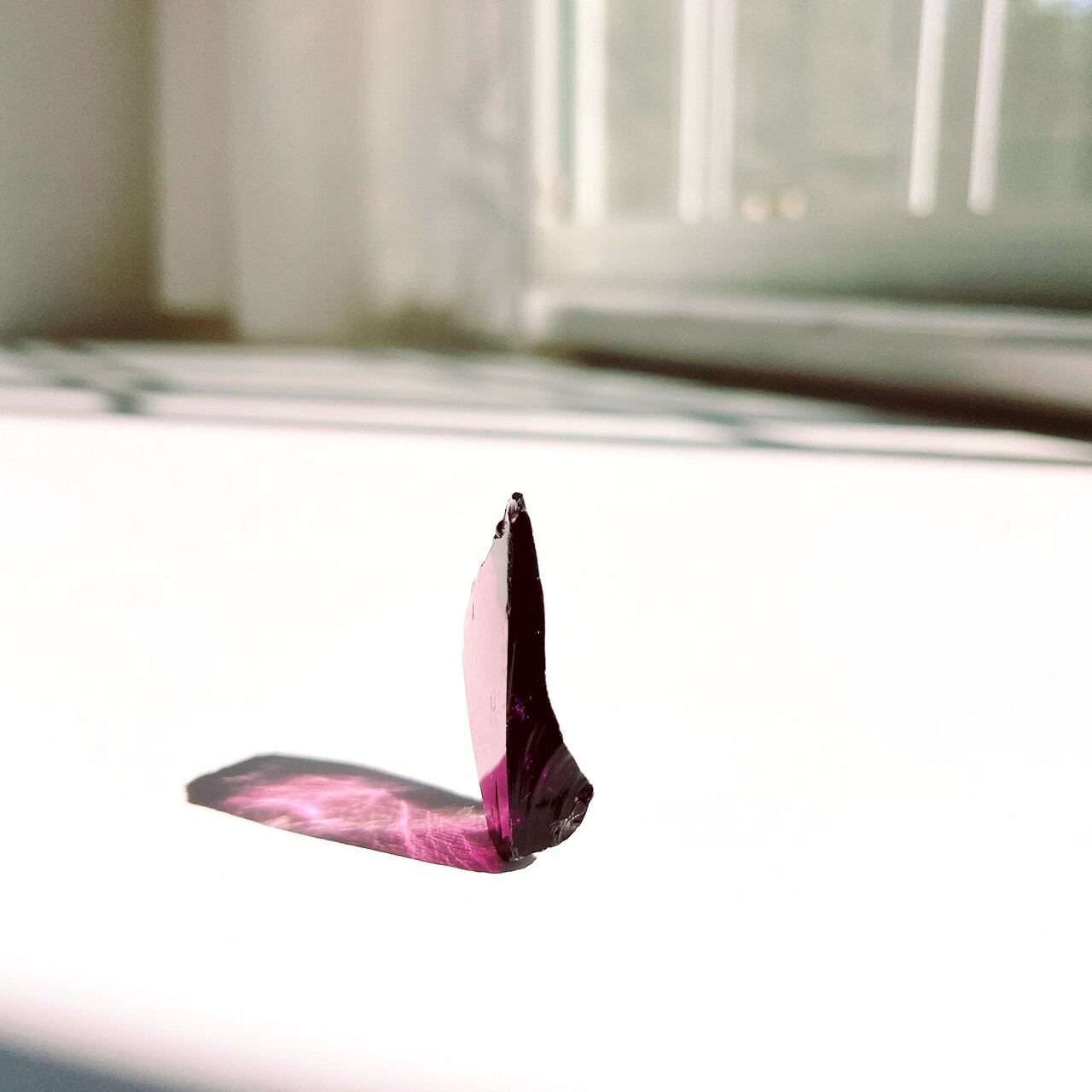 アメジスト色の羽のような形のアンダラクリスタルです。中に気泡も見られます。
