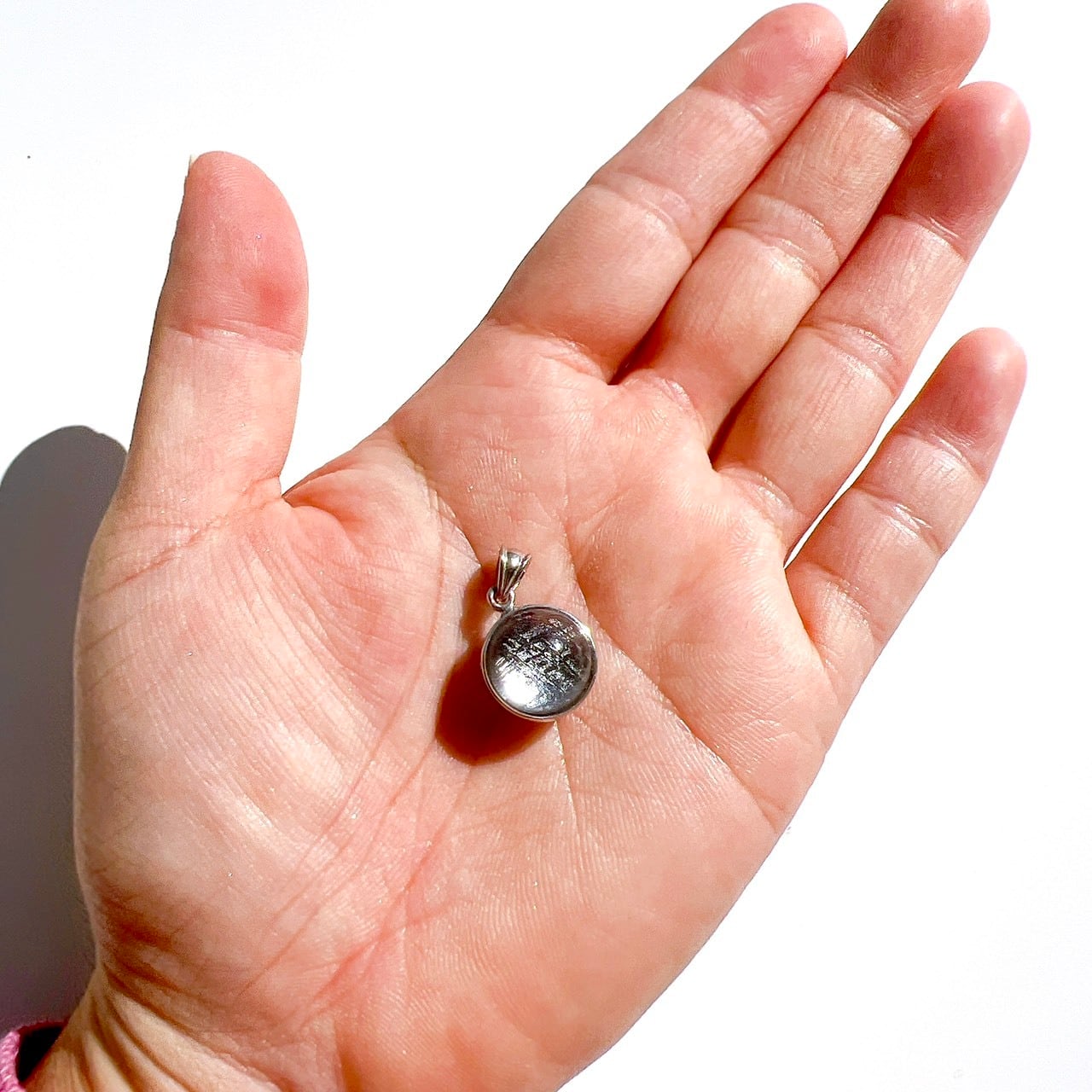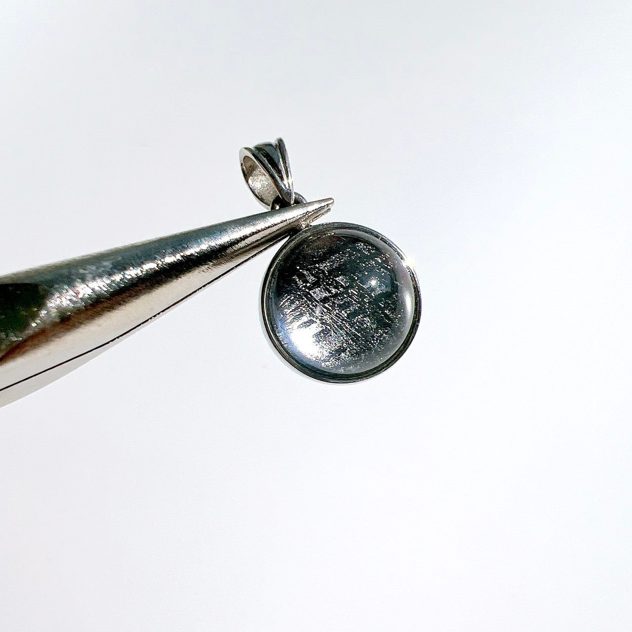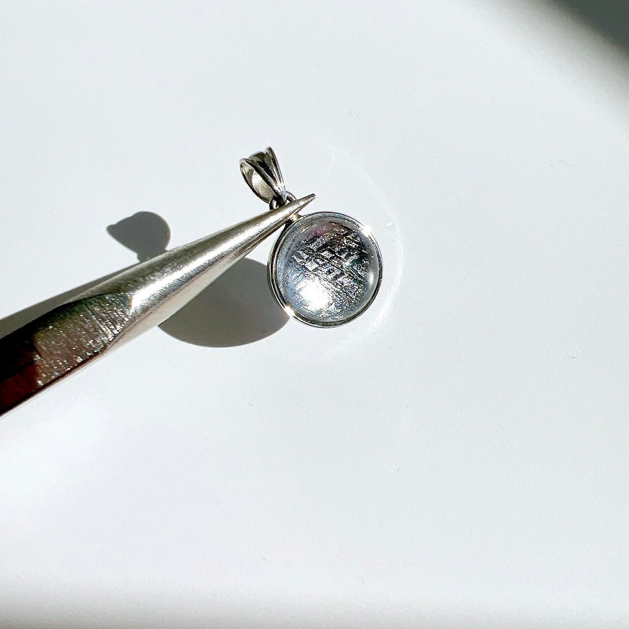 こちらのペンダントトップは、メテオライトの両面に、水晶がはめ込んであります。
