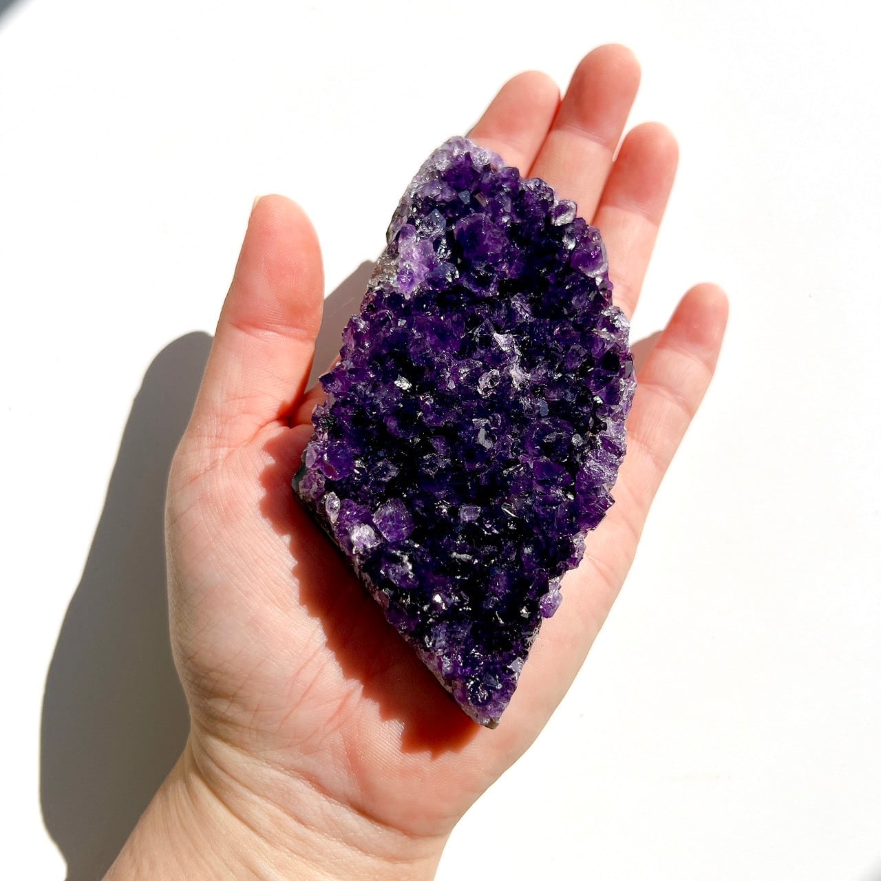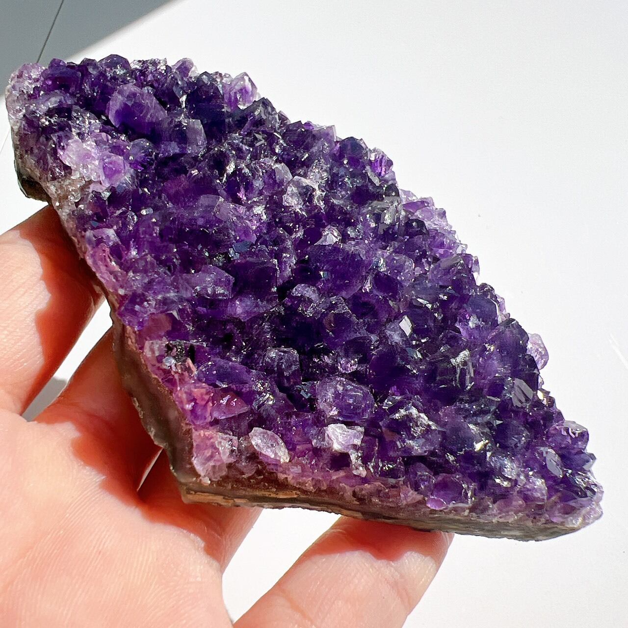 ※撮影の為、太陽光の下で撮影していますが、お部屋に置かれる際は、長時間、直射日光に当たらない場所に置くのがおすすすめです。やさしい環境で置くことで、アメジストの美しさが長く保たれます。