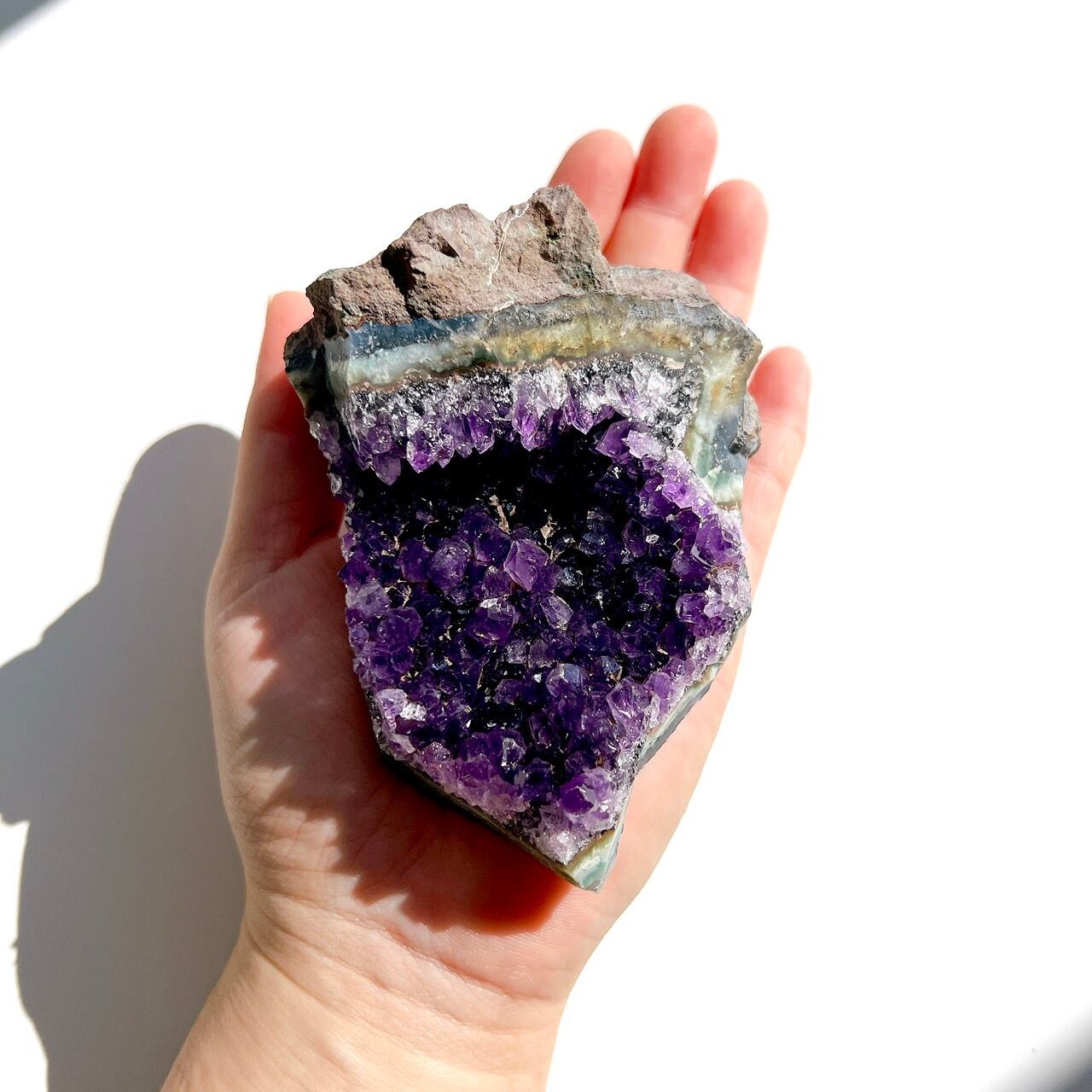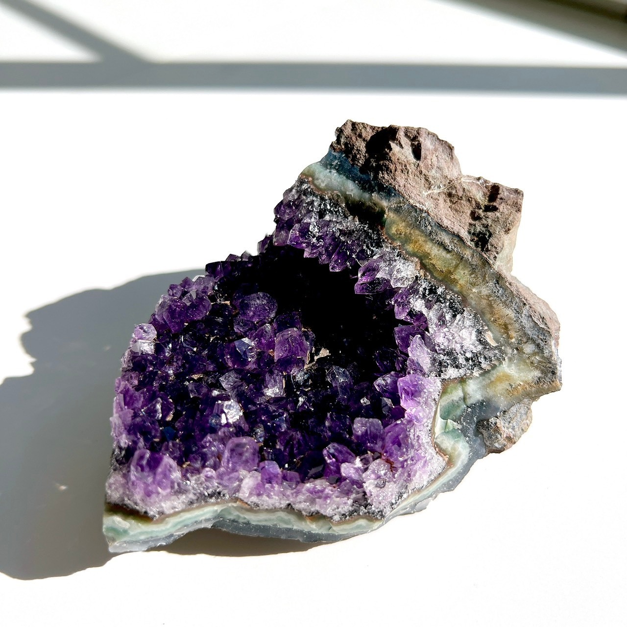 ※撮影の為、太陽光の下で撮影していますが、お部屋に置かれる際は、長時間、直射日光に当たらない場所に置くのがおすすすめです。やさしい環境で置くことで、アメジストの美しさが長く保たれます。
