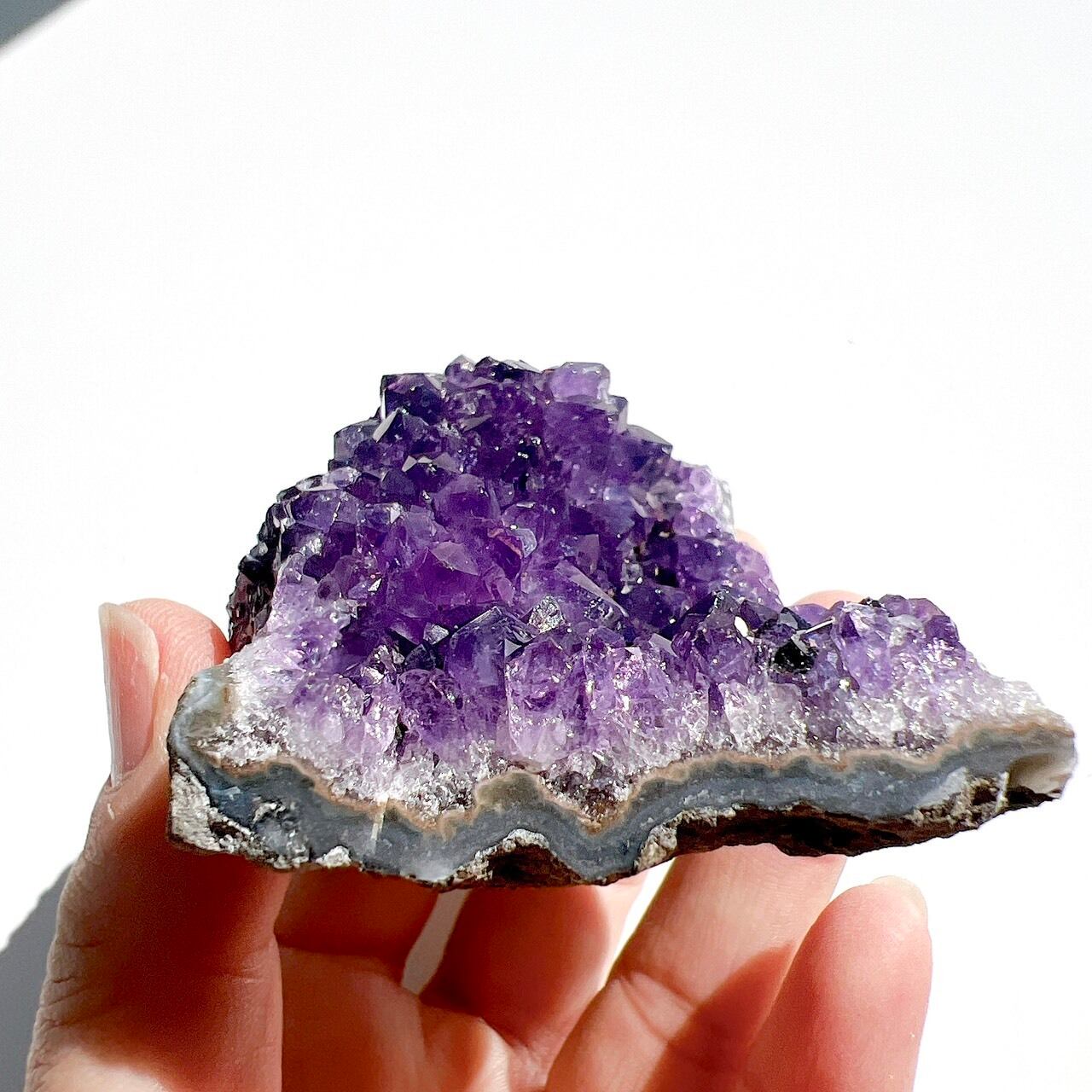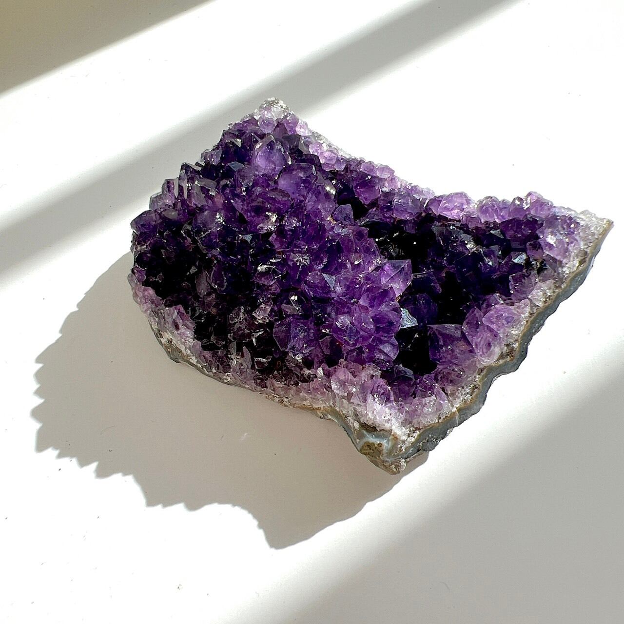 ※撮影の為、太陽光の下で撮影していますが、お部屋に置かれる際は、長時間、直射日光に当たらない場所に置くのがおすすすめです。やさしい環境で置くことで、アメジストの美しさが長く保たれます。