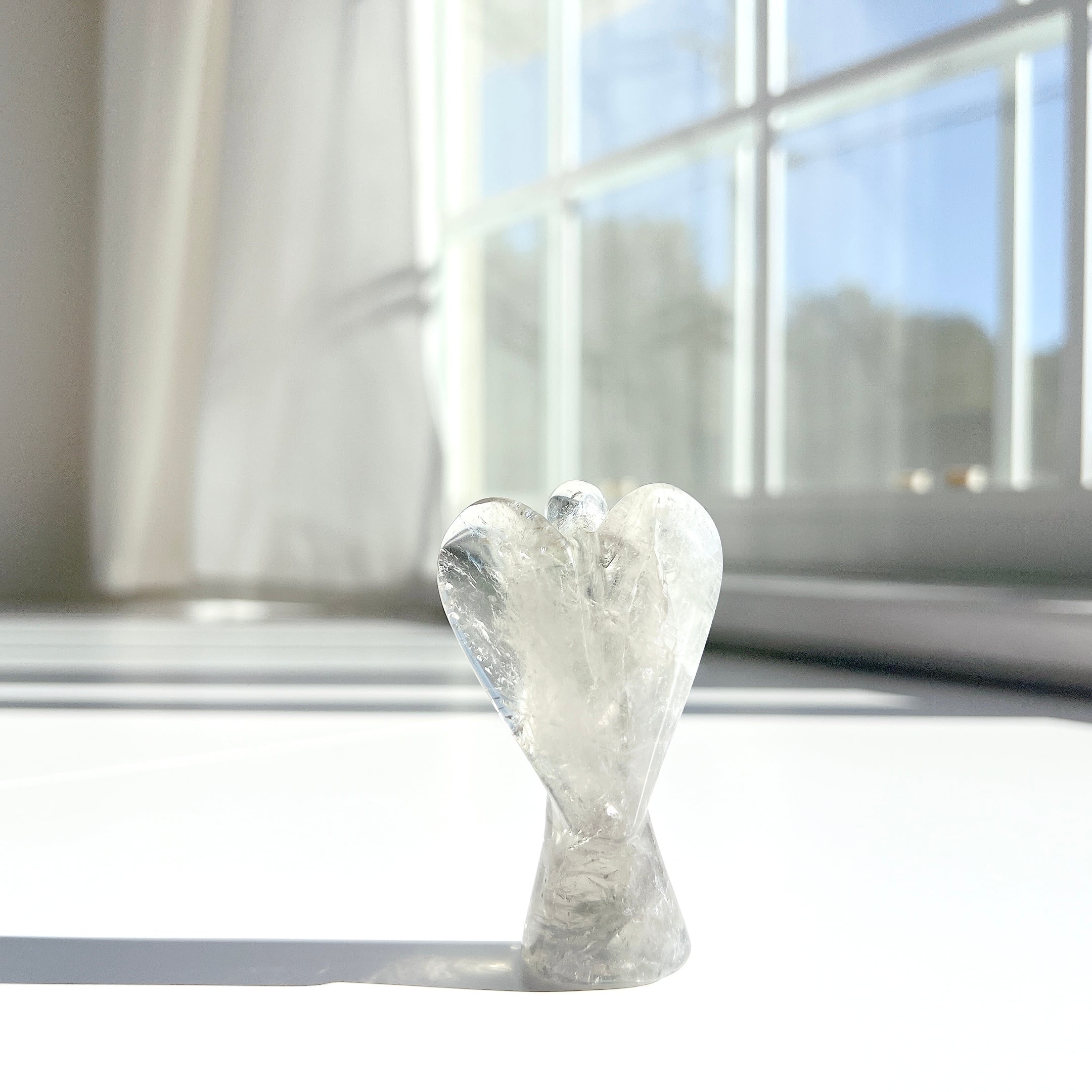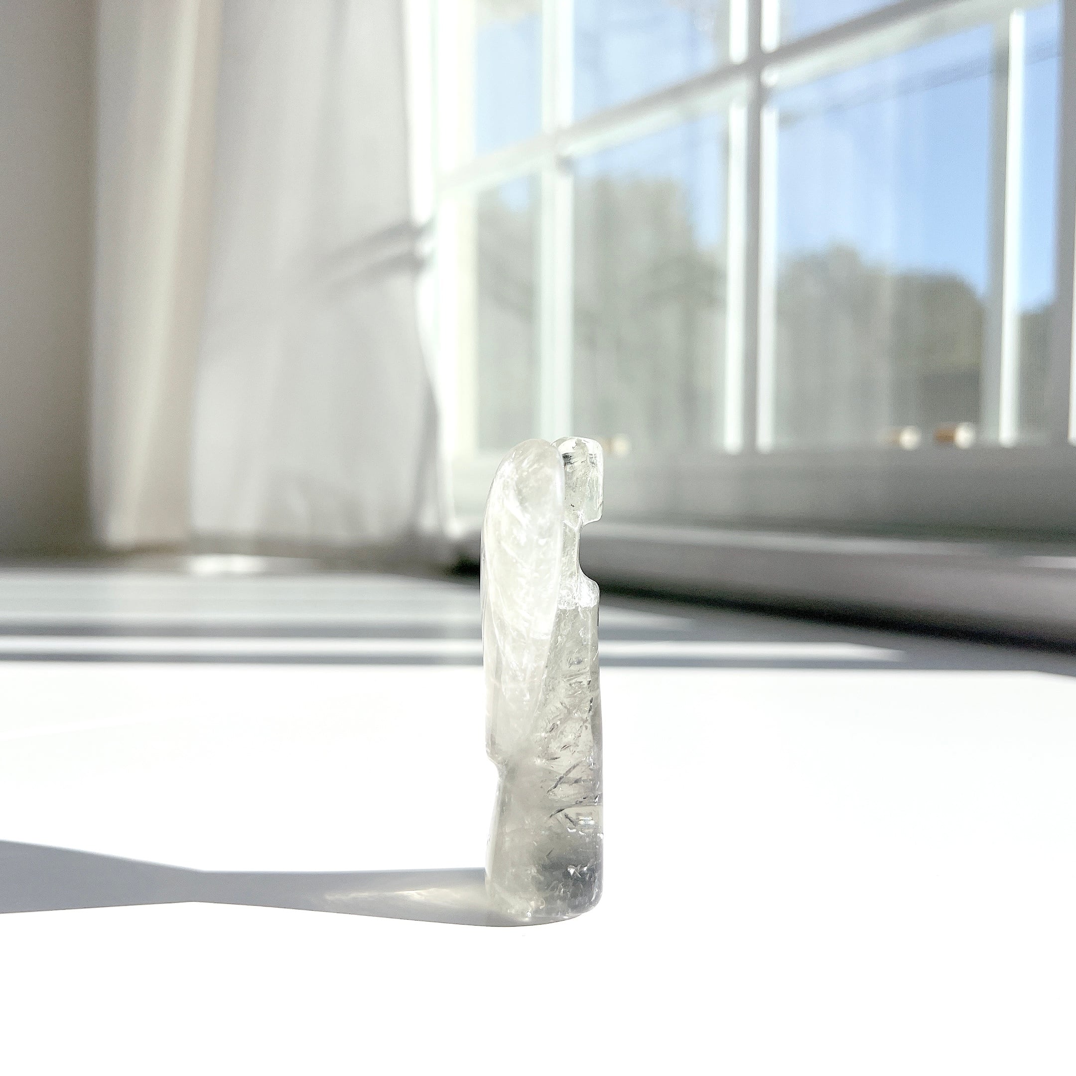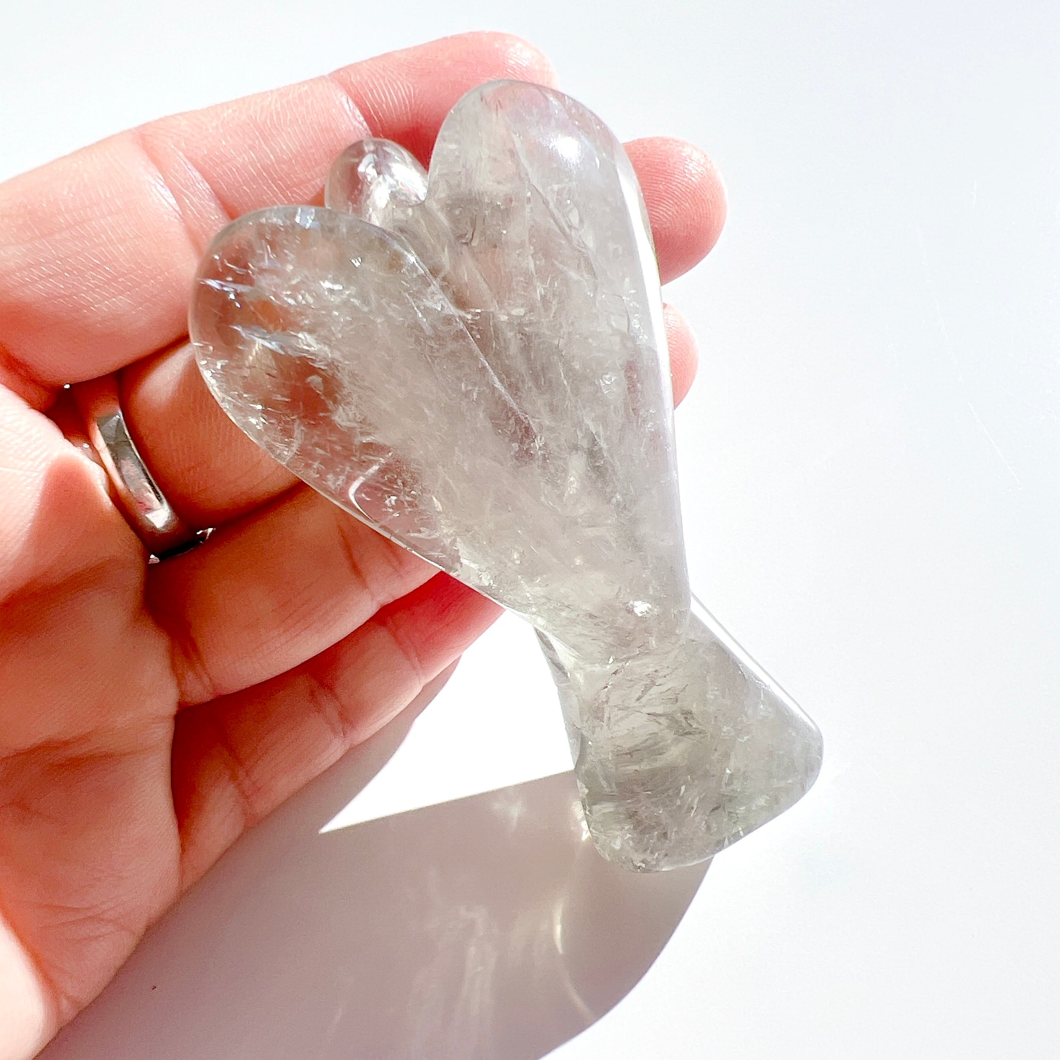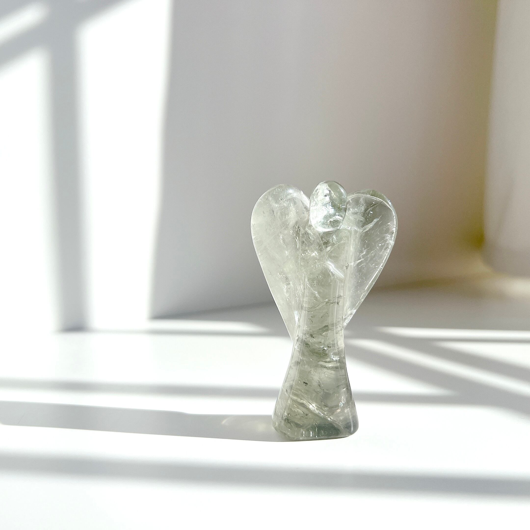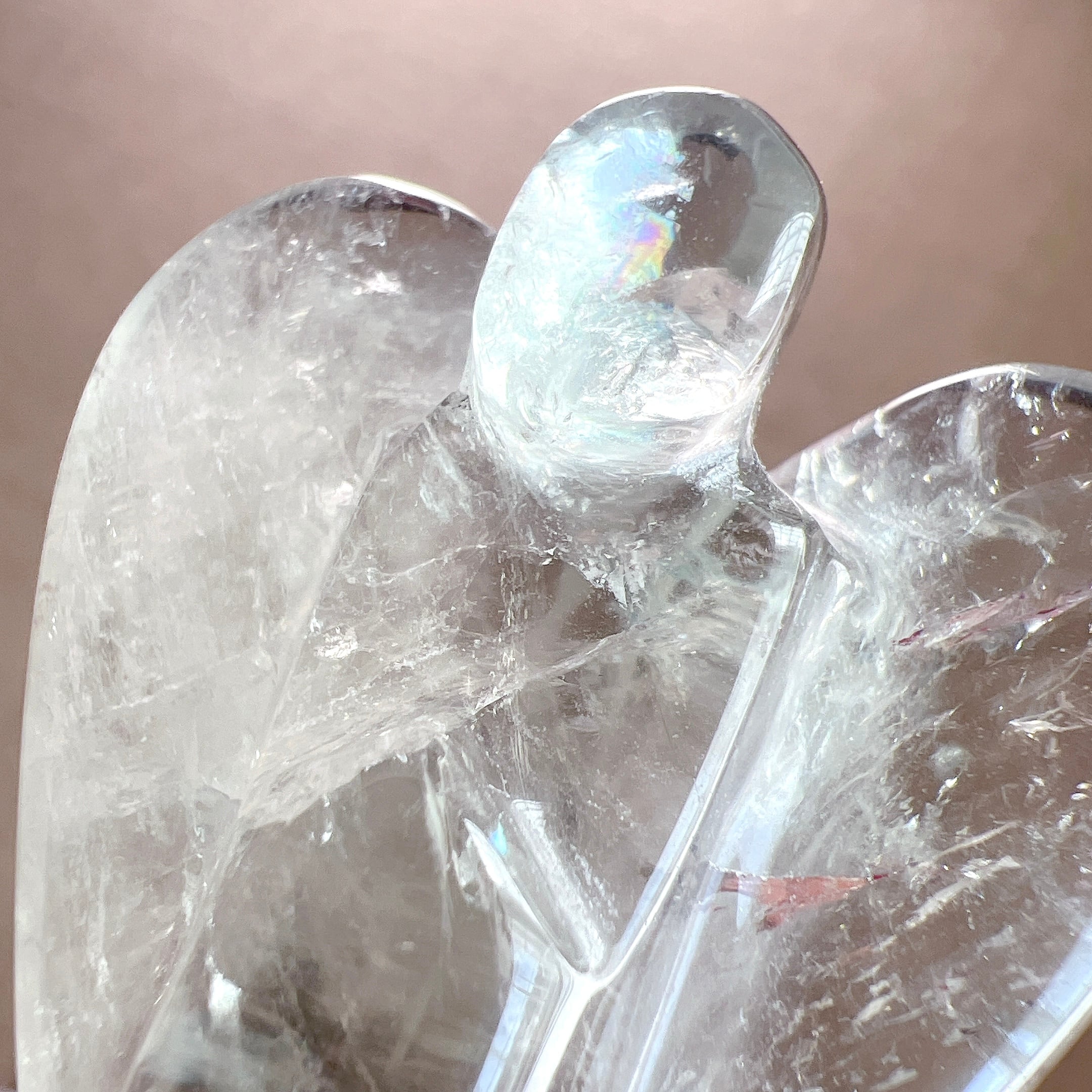 プラシオライト(グリーンアメジスト)の天使で、お顔の部分に虹が見えます。