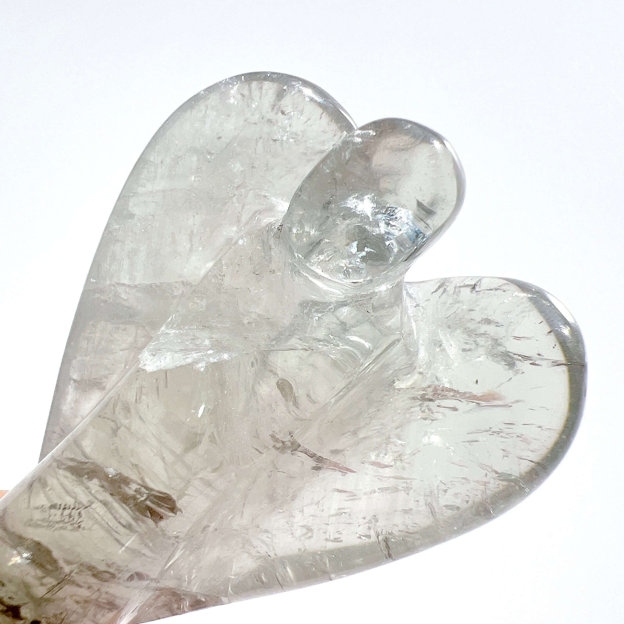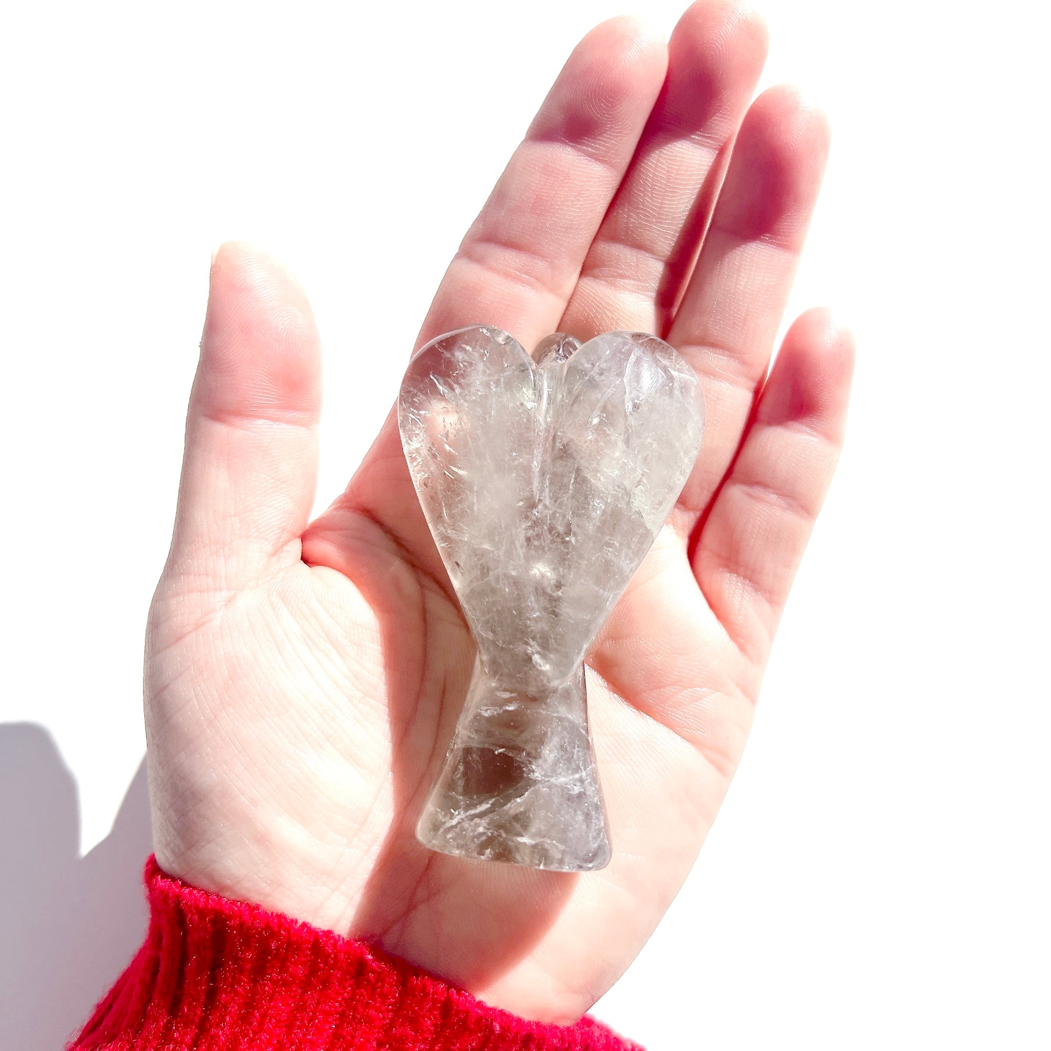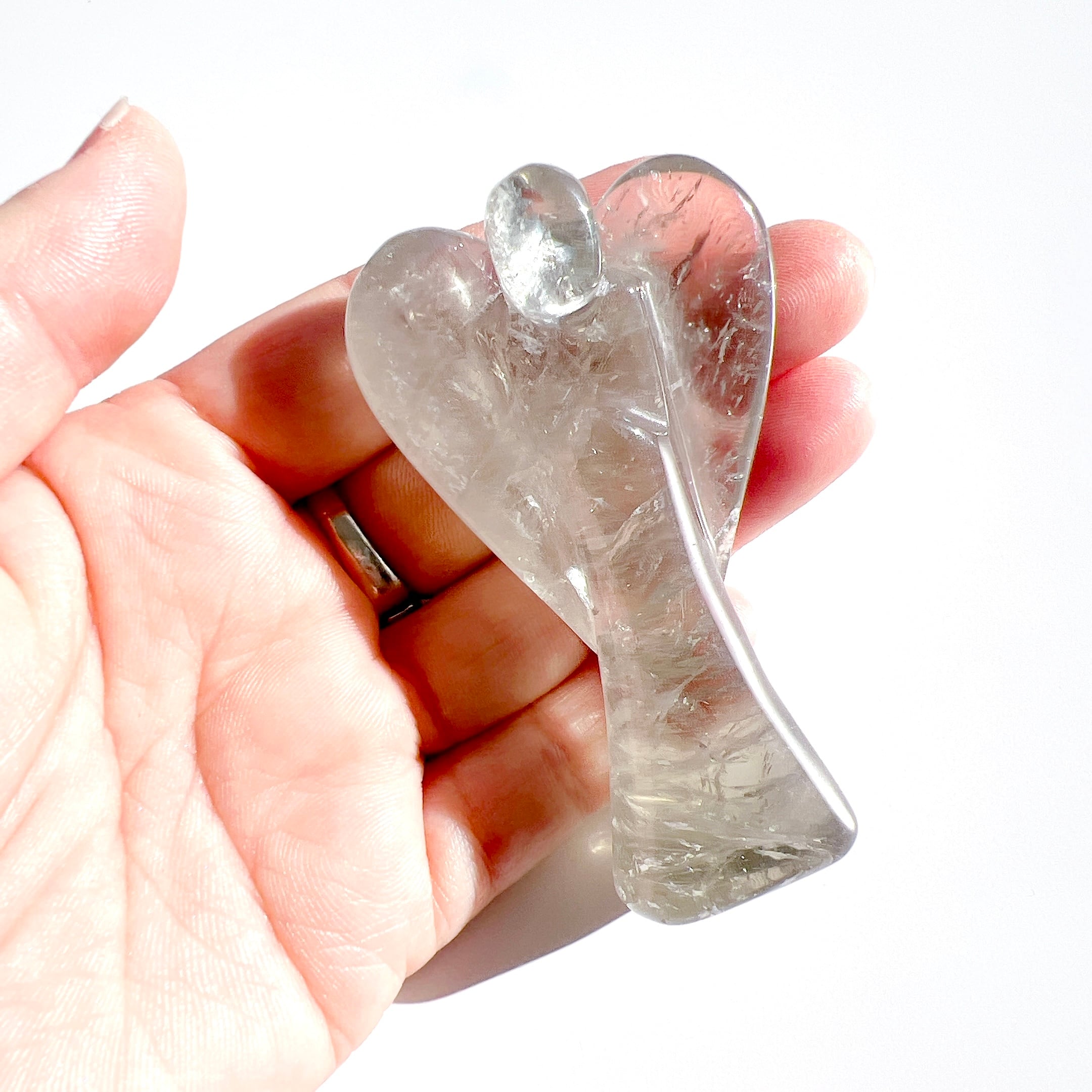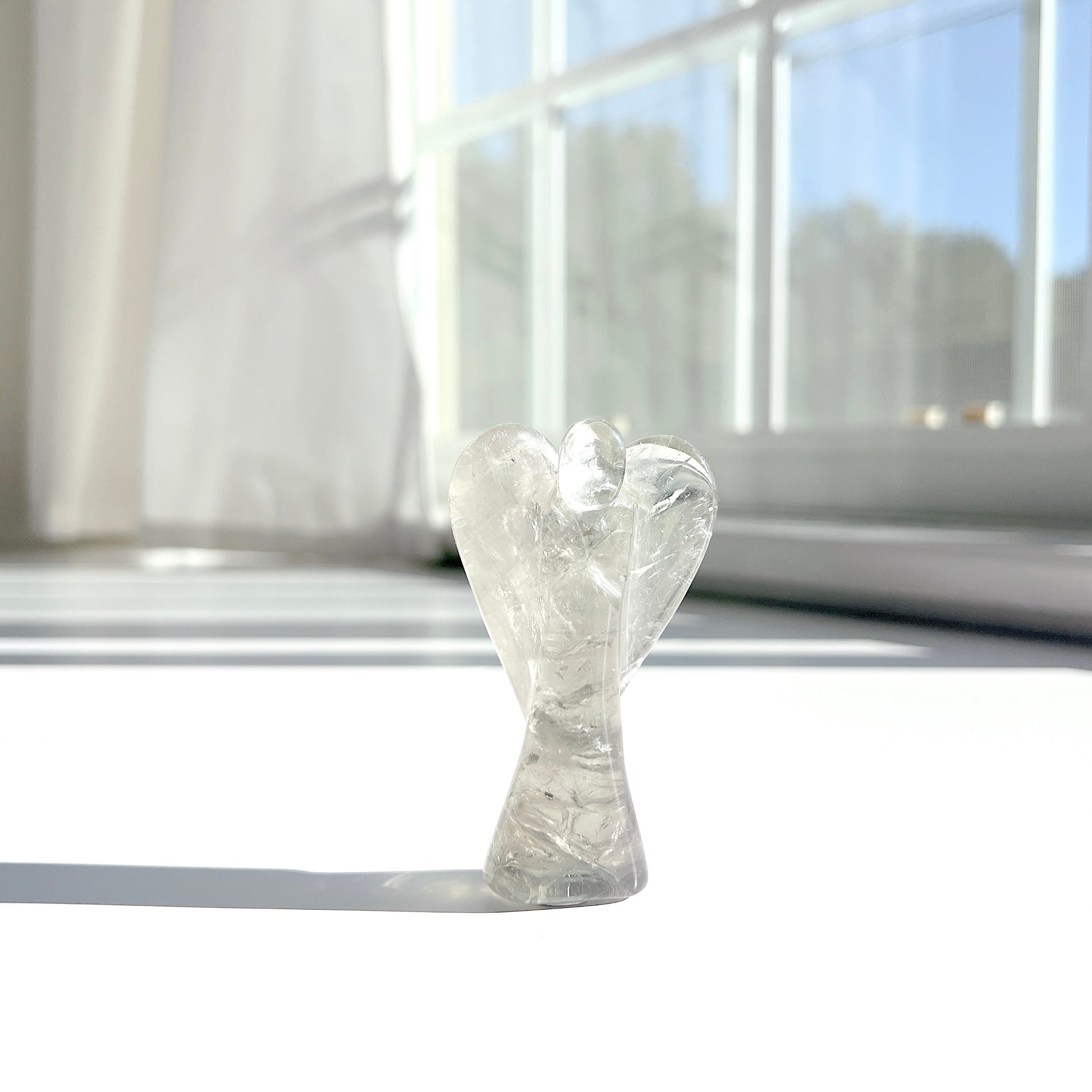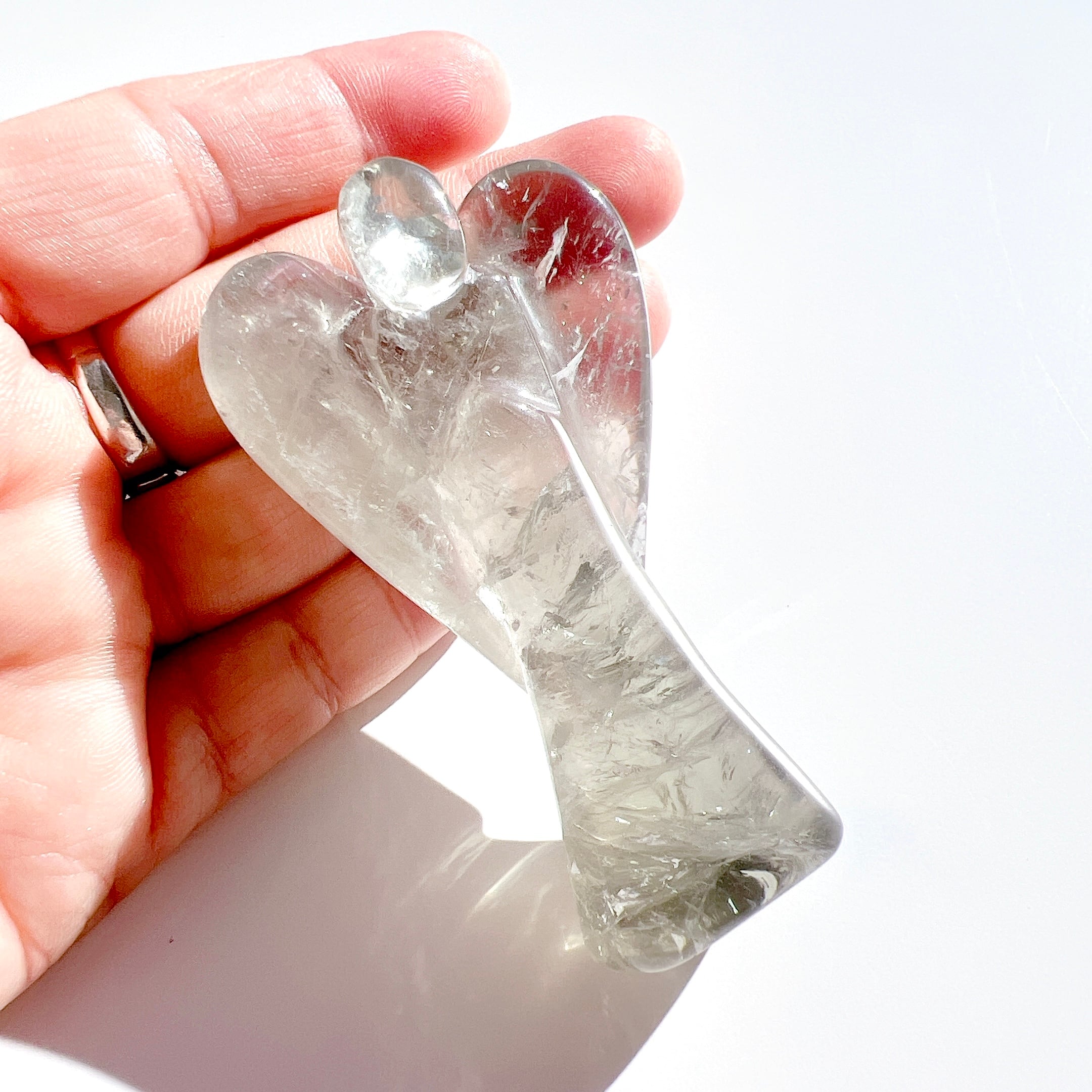 プラシオライト(グリーンアメジスト)の天使で、お顔の部分に虹が見えます。