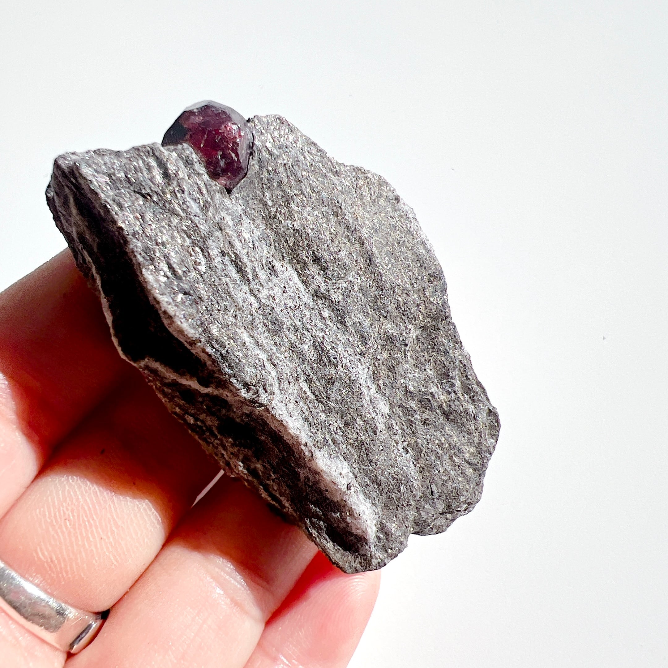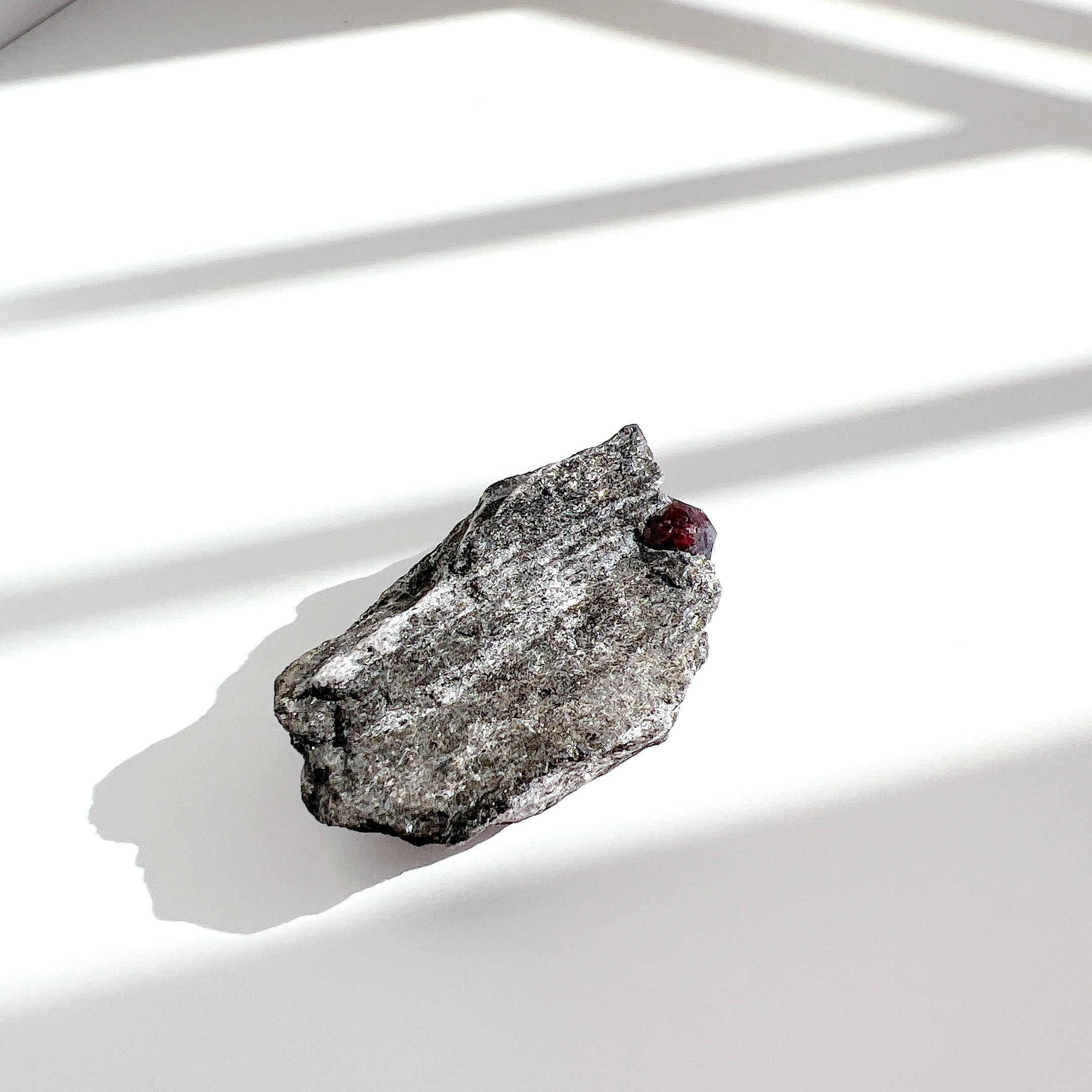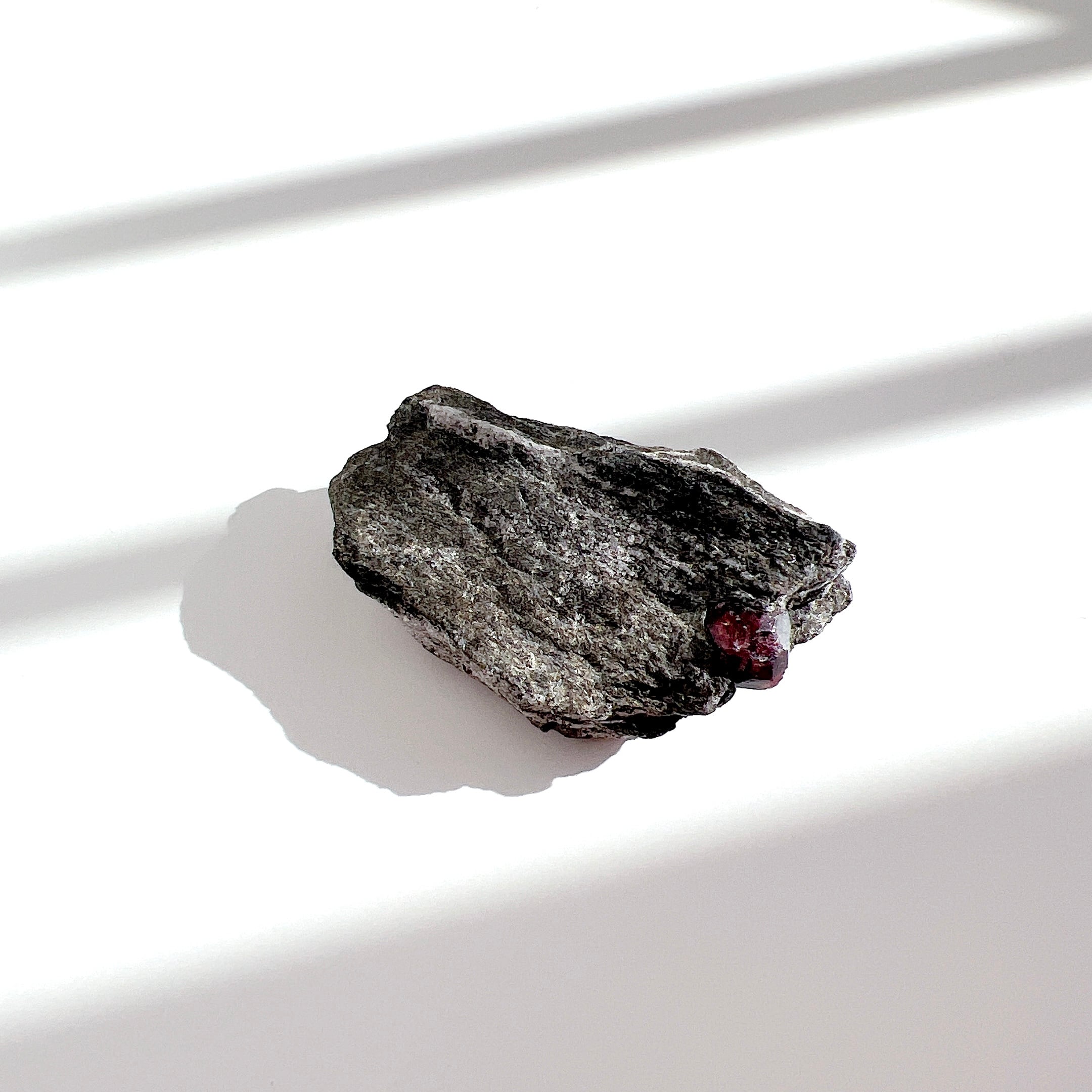 ガーネットinマイカは、情熱と実りを象徴するガーネットと、包み込み守るエネルギーを持つマイカ(雲母)が、ひとつの原石の中で共存する、非常に美しい鉱物のひとつです。