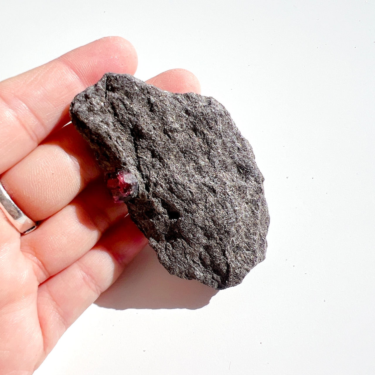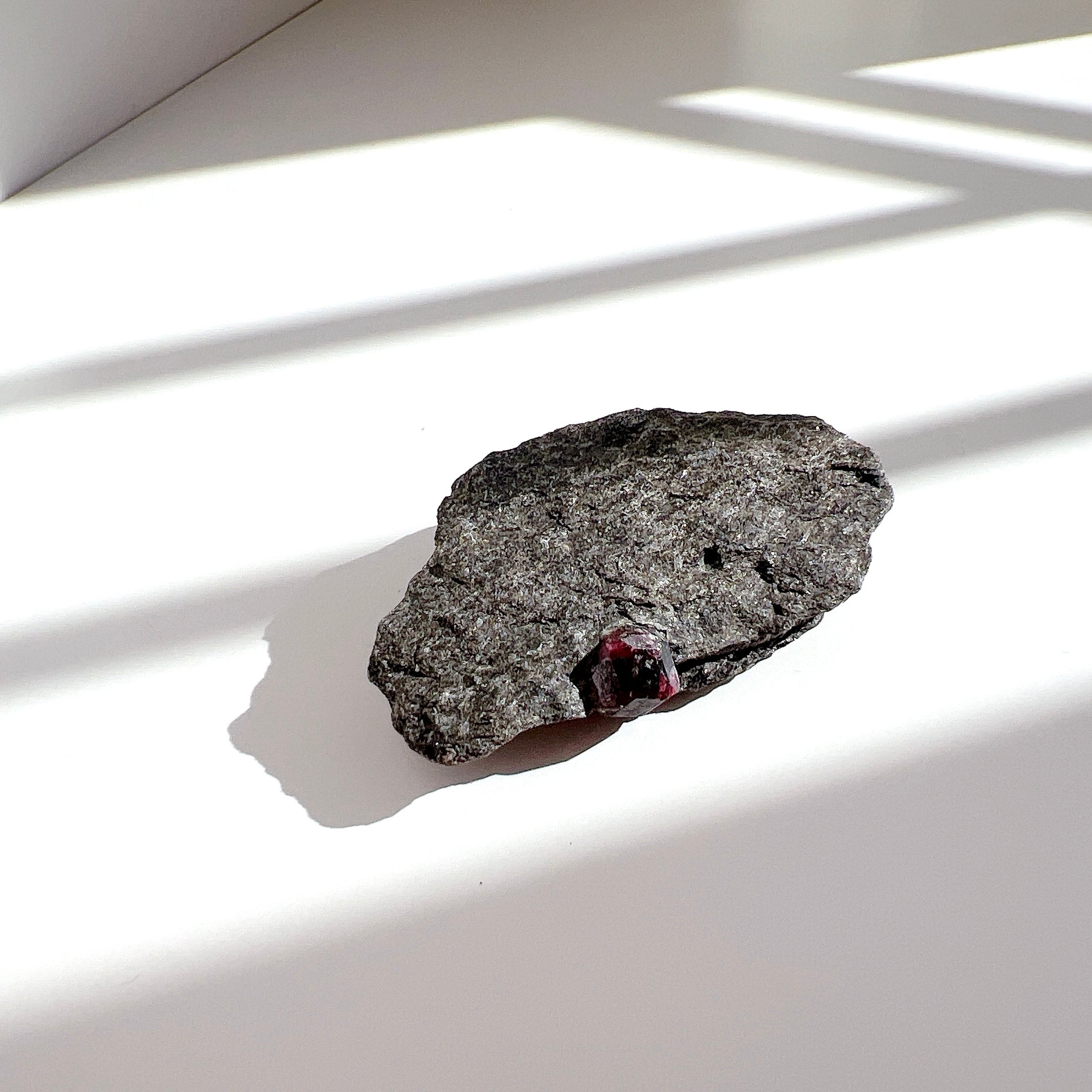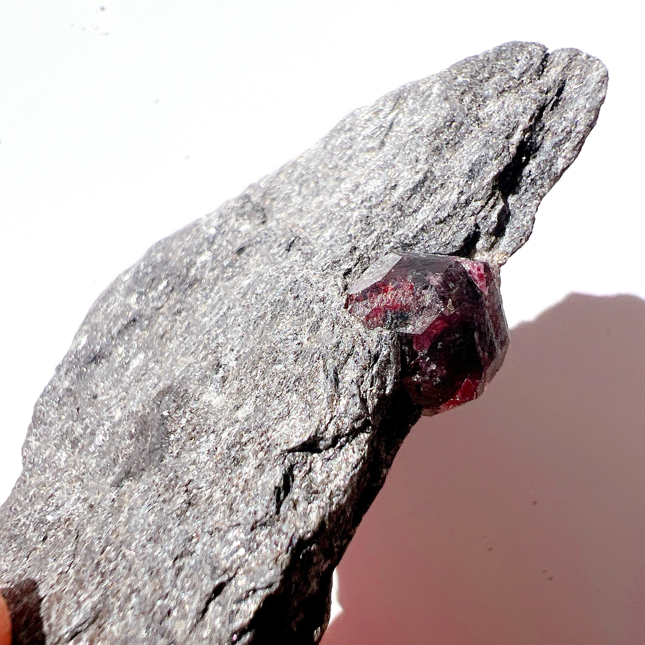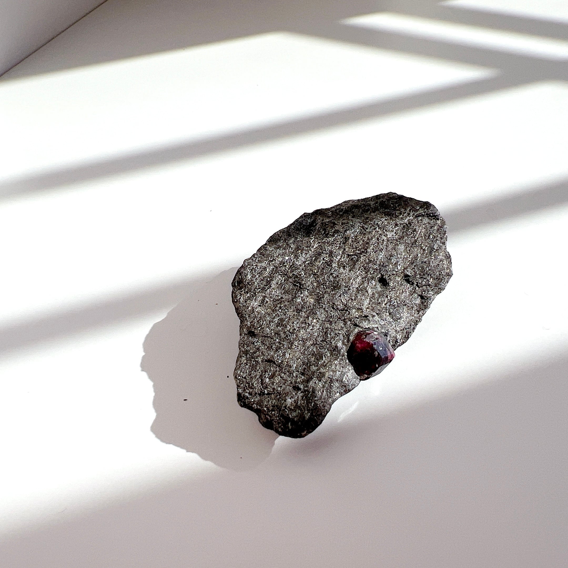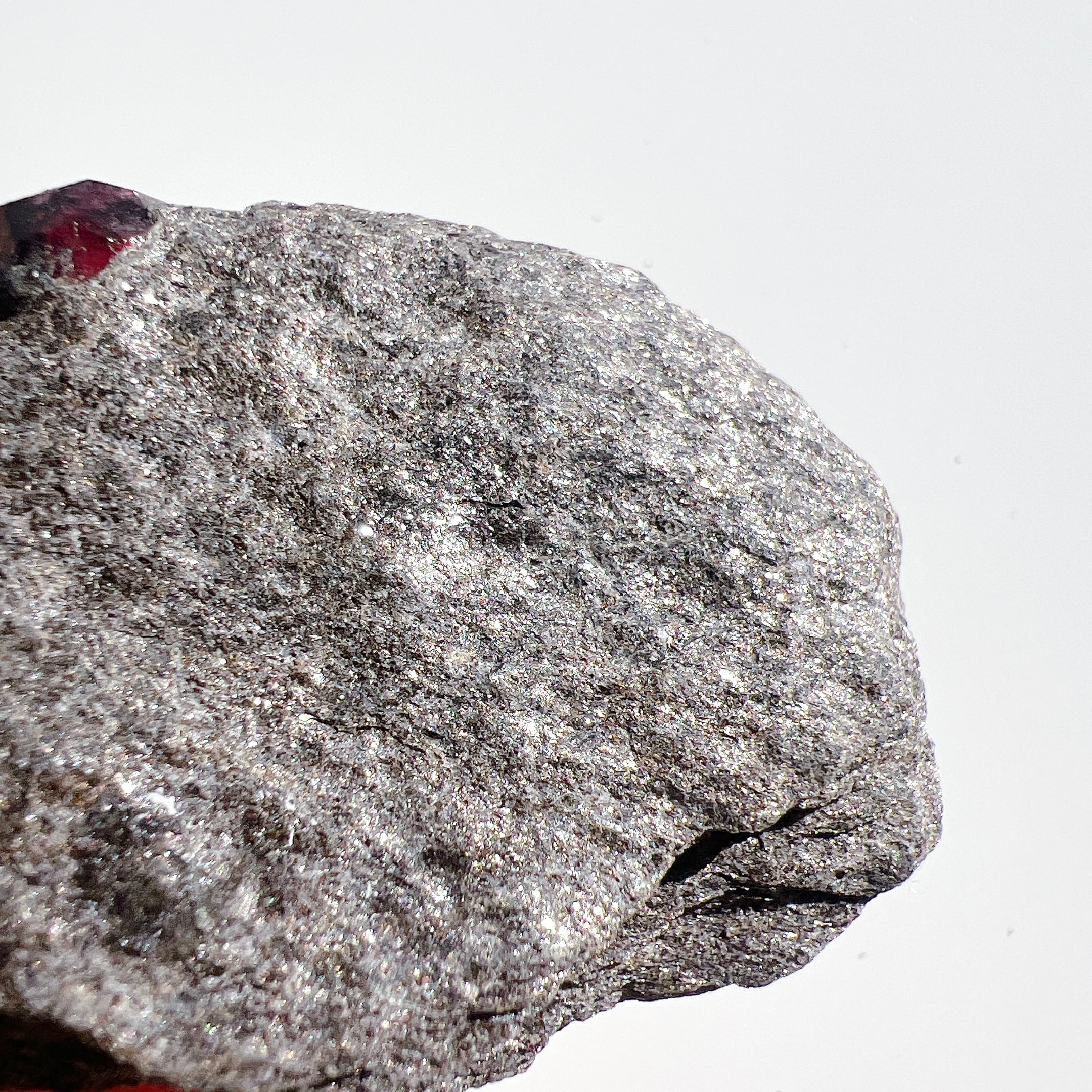 ガーネットinマイカは、情熱と実りを象徴するガーネットと、包み込み守るエネルギーを持つマイカ(雲母)が、ひとつの原石の中で共存する、非常に美しい鉱物のひとつです。