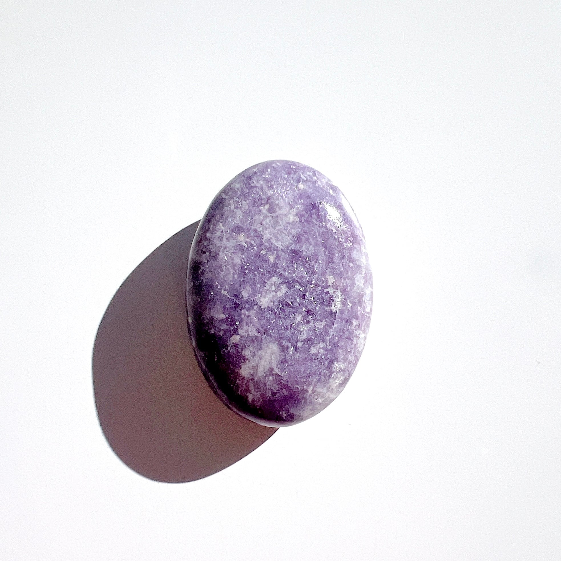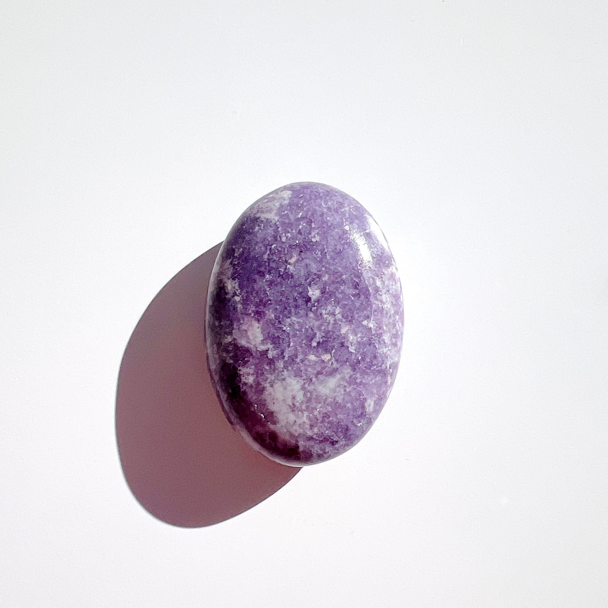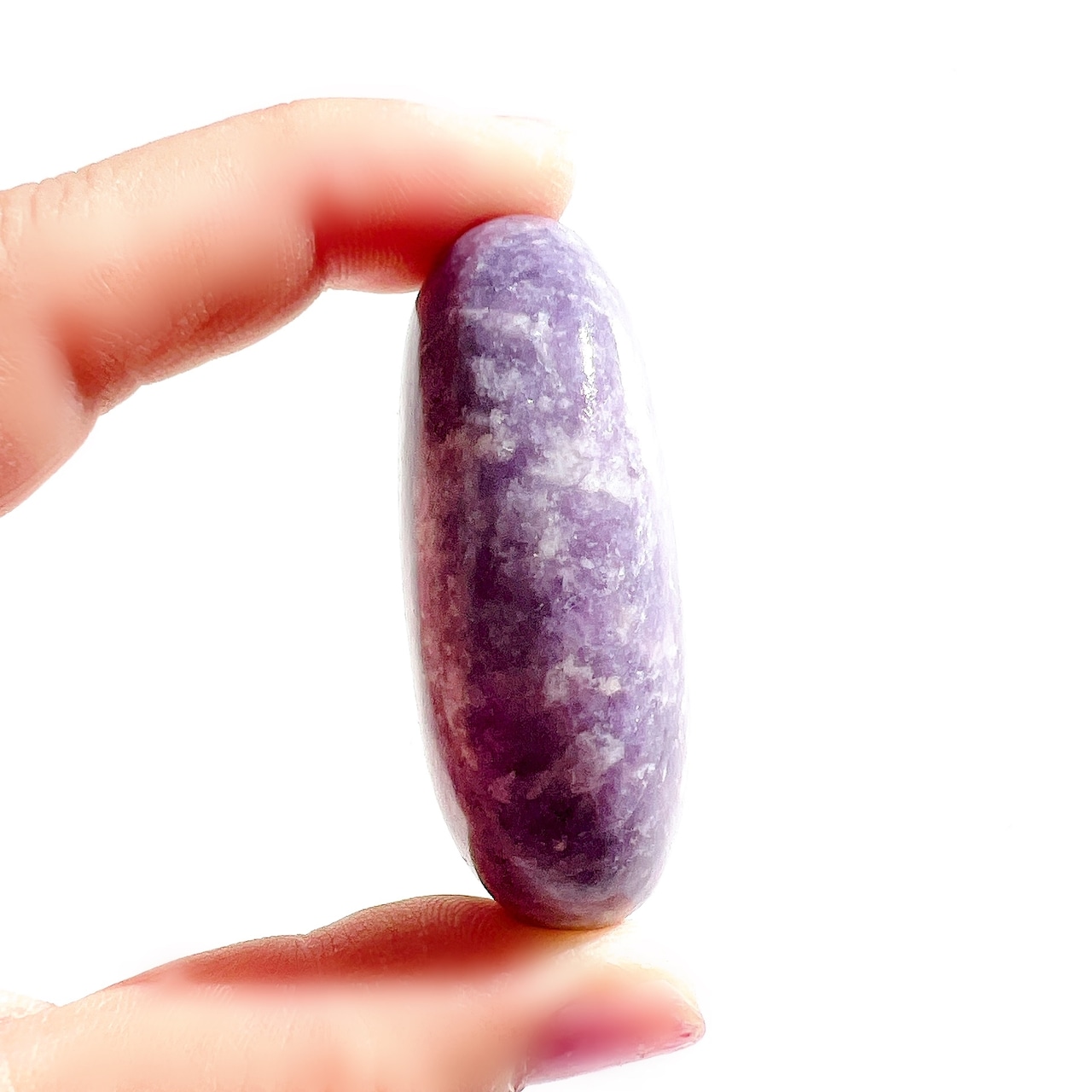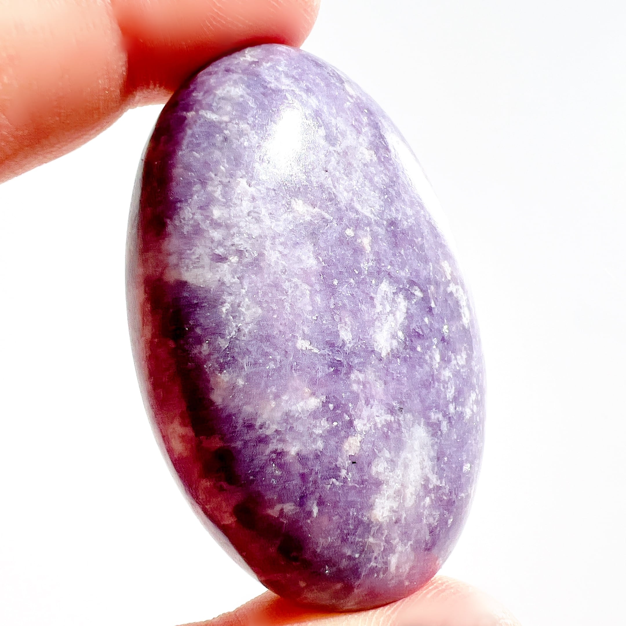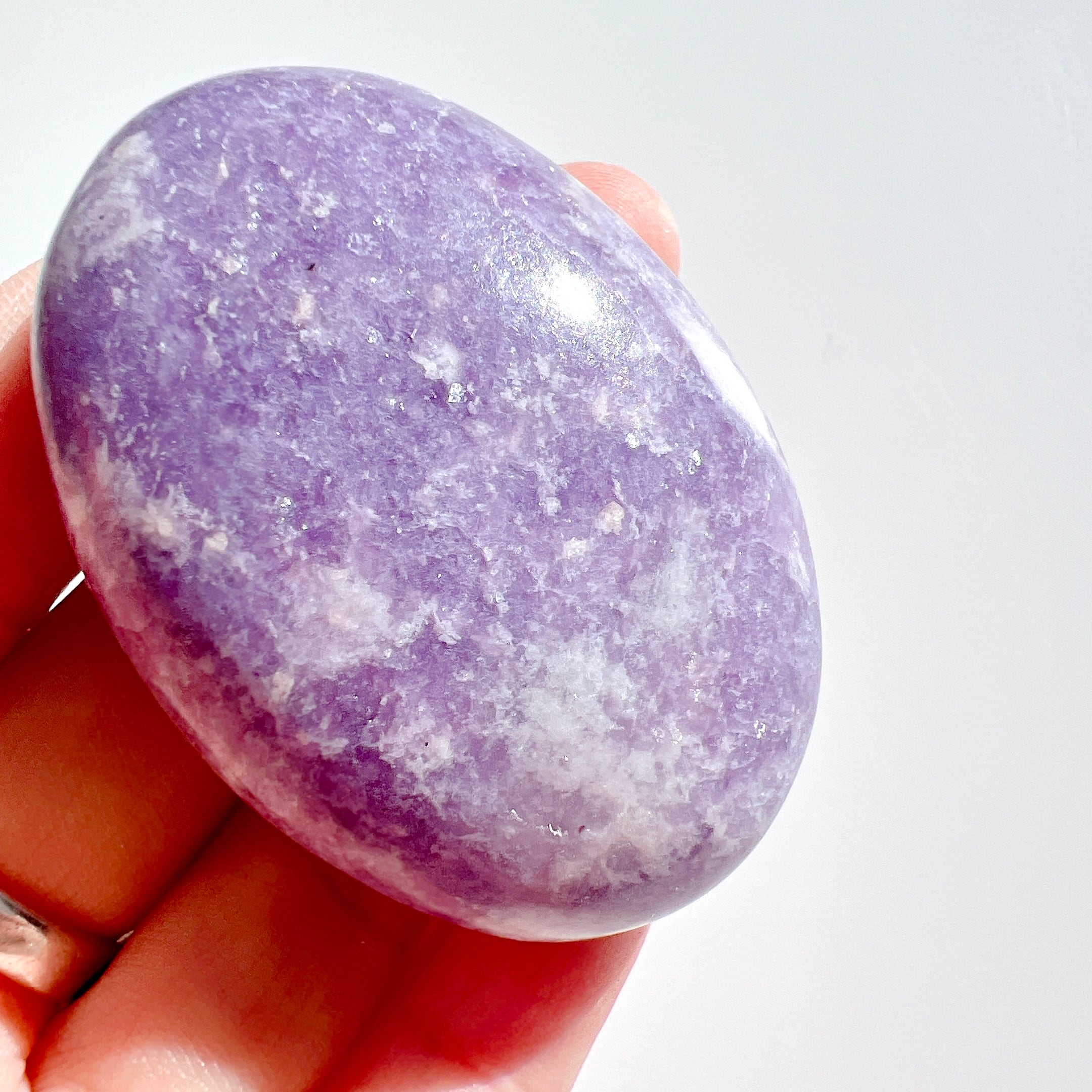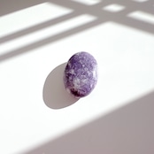 淡い紫色に、細かな輝きが美しいレピドライト・ペブル(握り石)です。