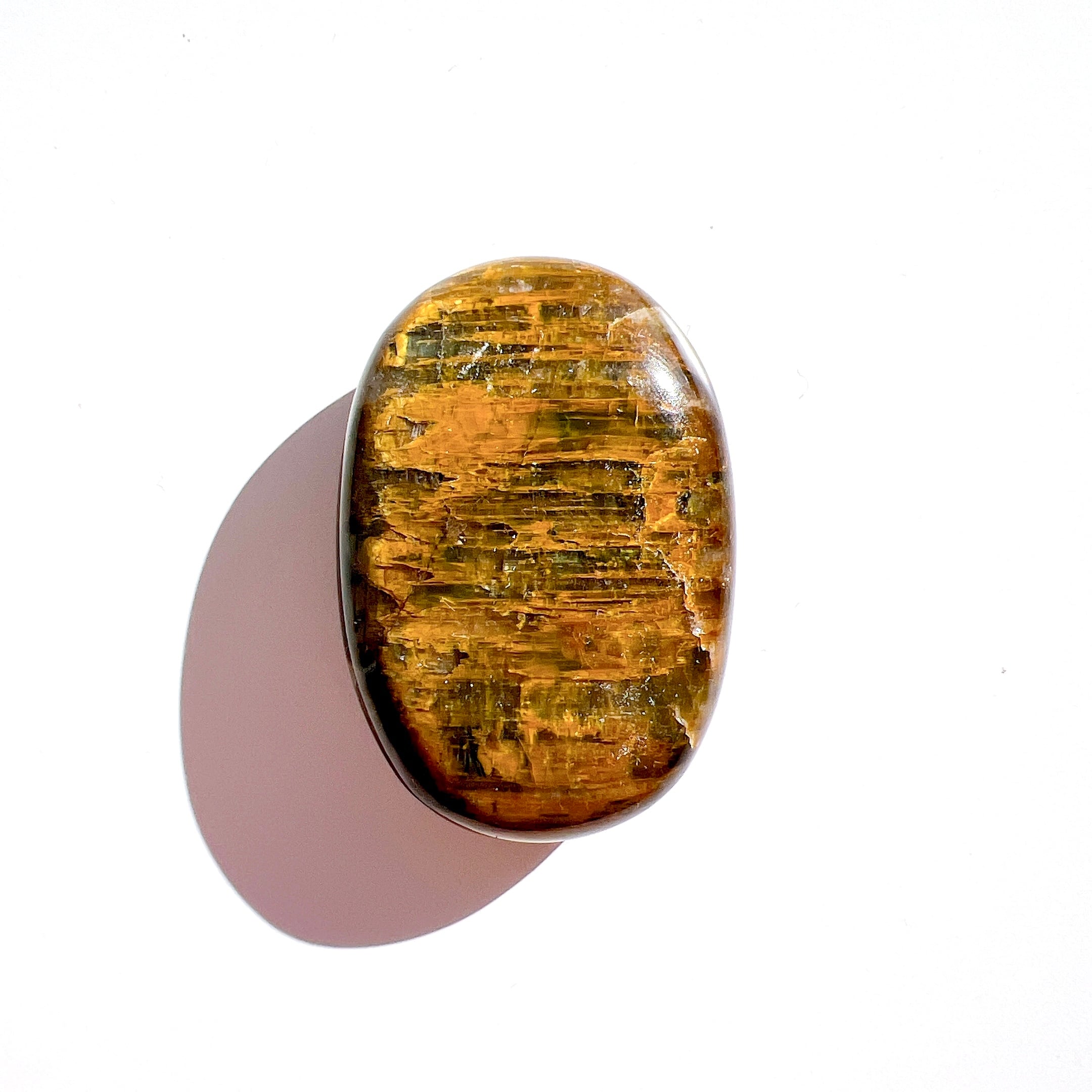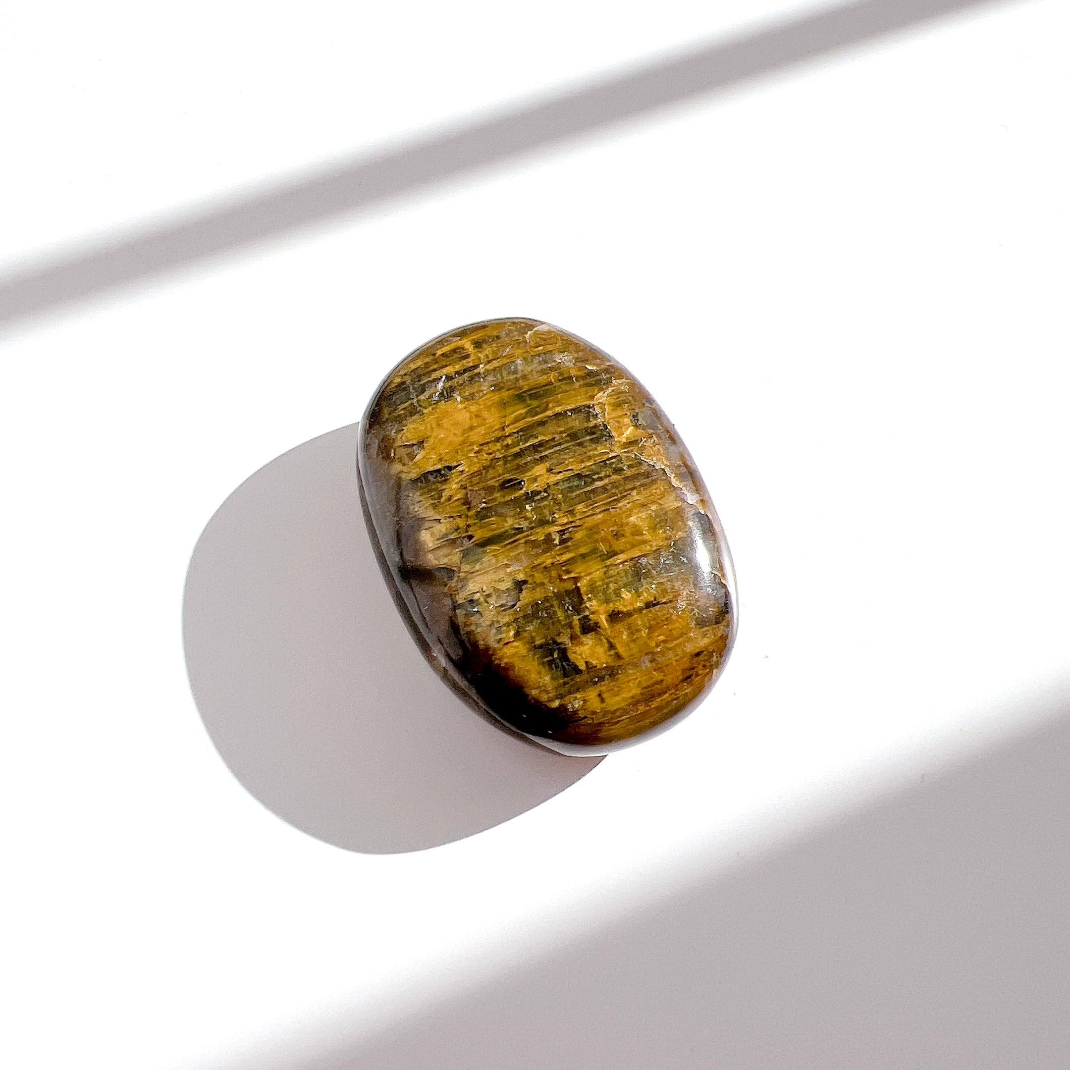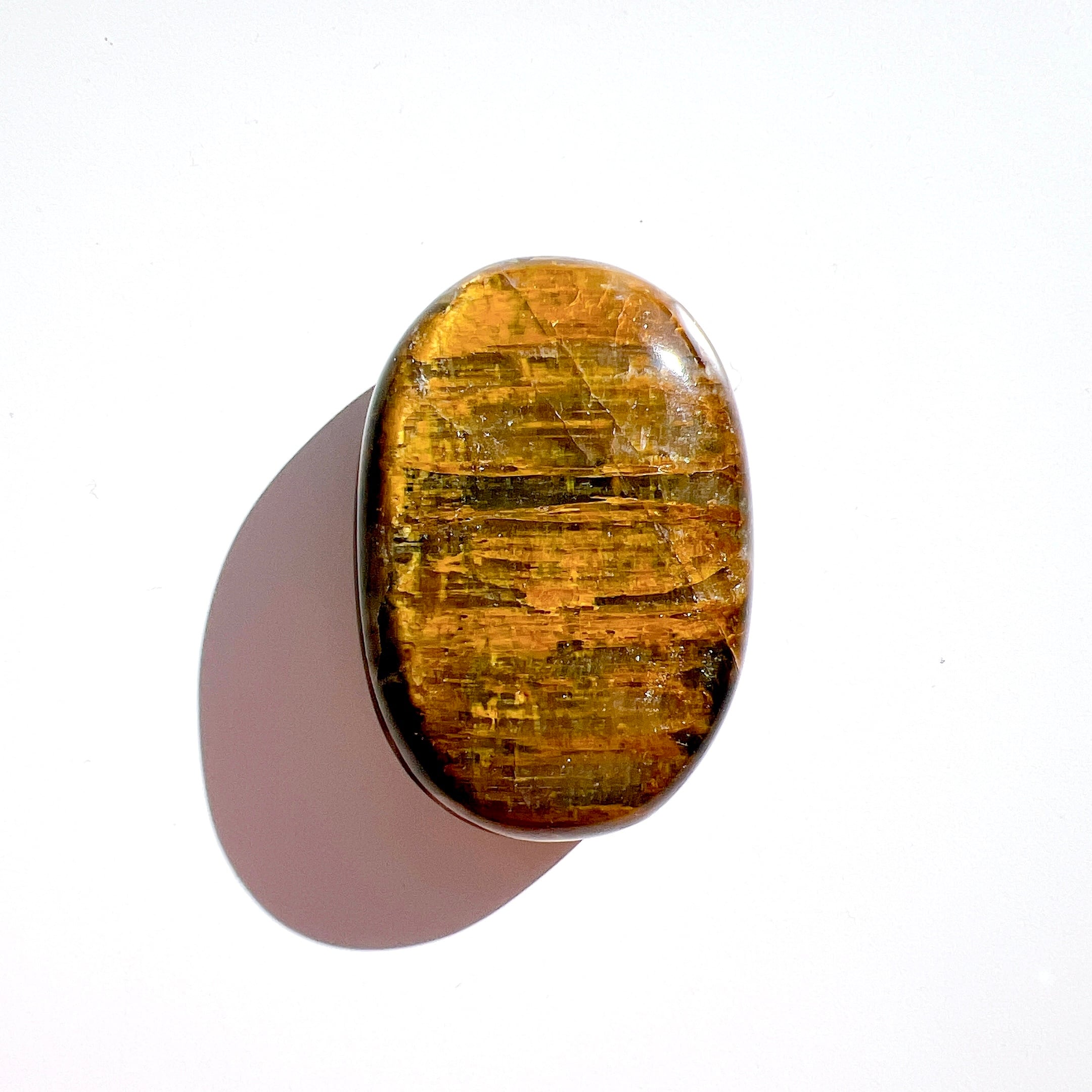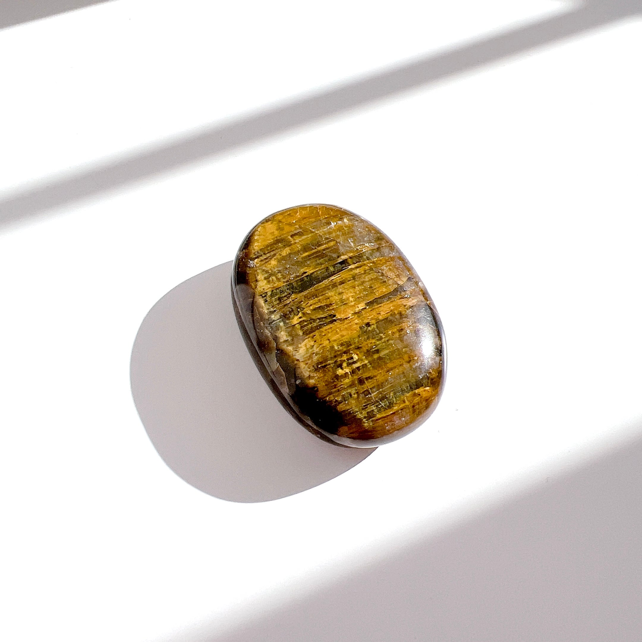 別名「ハニーストーン」とも呼ばれ、繊維状のクロシドライトに石英が入り込み、鉄分の酸化によって、青、黄色、赤へと表情を変える、奥深い輝きが特徴です。