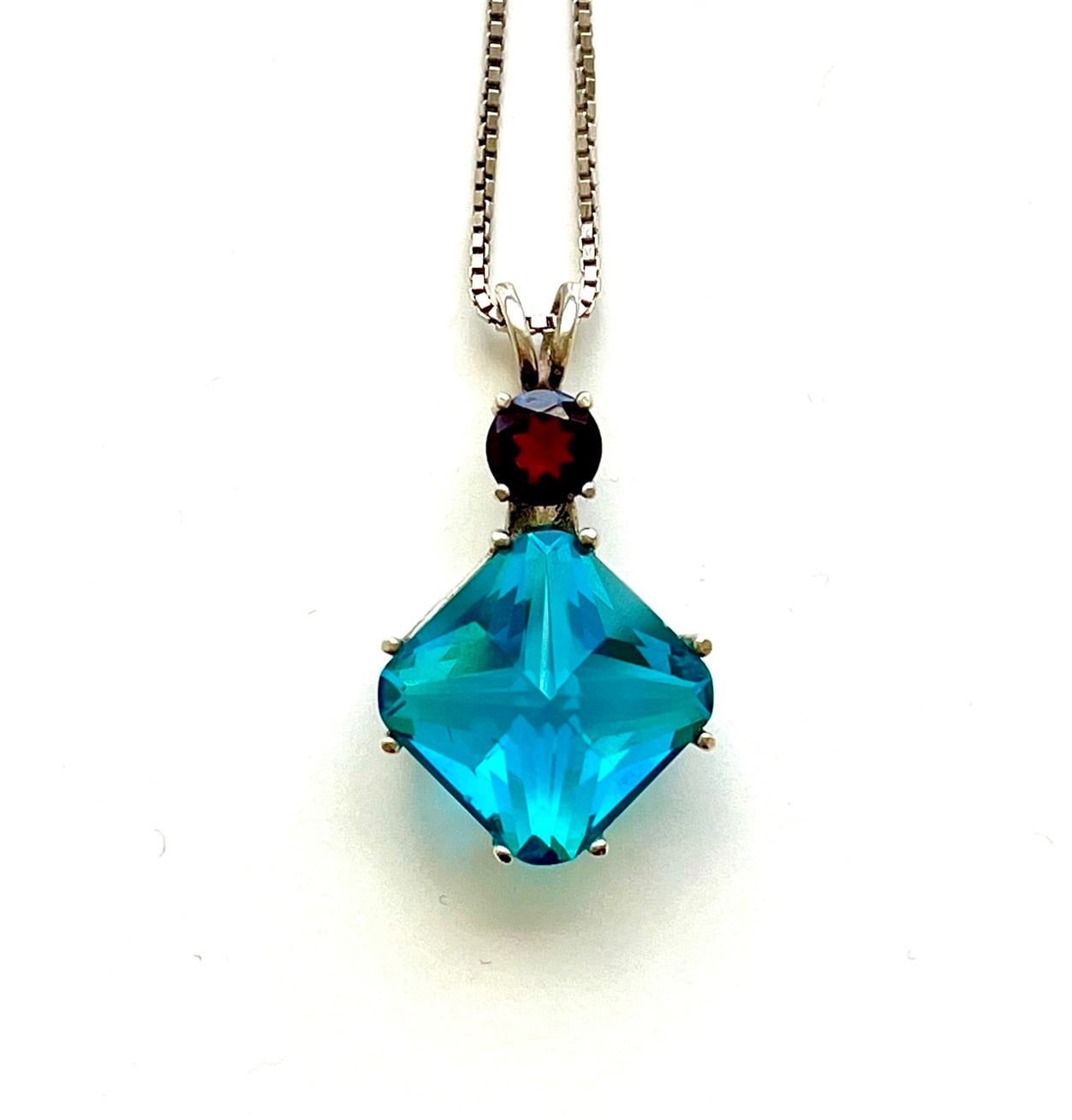 ブラジルのバイアでとれる天然のオブシディアンに、ガーネットが付いたスペシャルなネックレスです。