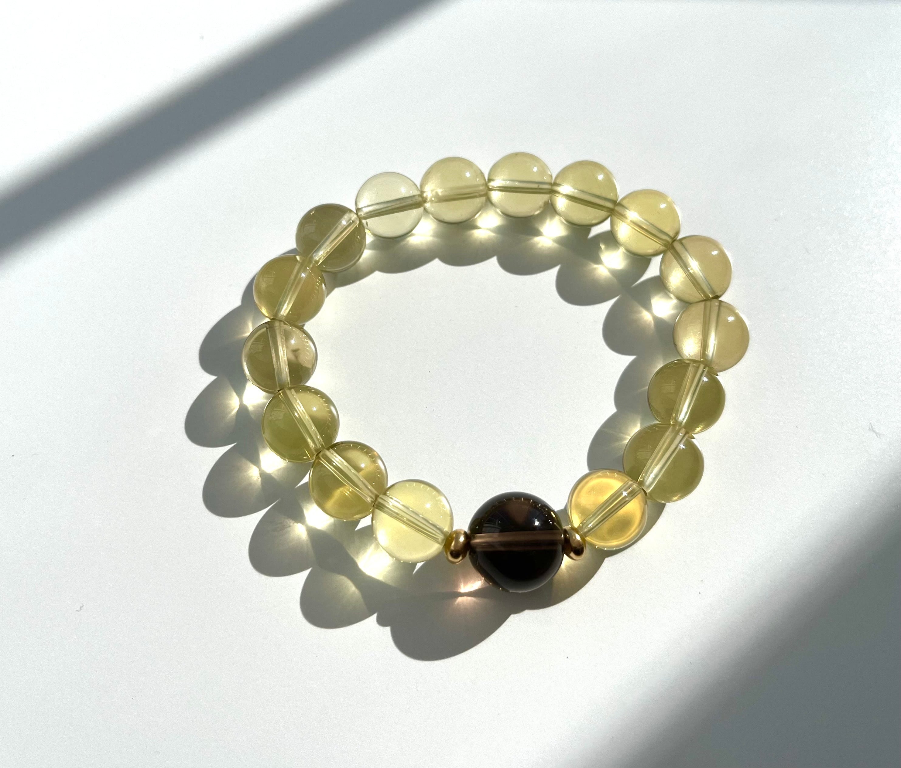 レモンクォーツとスモーキークォーツの美しさを添えたシンプルビューティーブレスシリーズ。どんなコーディネートにもマッチし、存在感のある輝きを放つアクセサリーです。