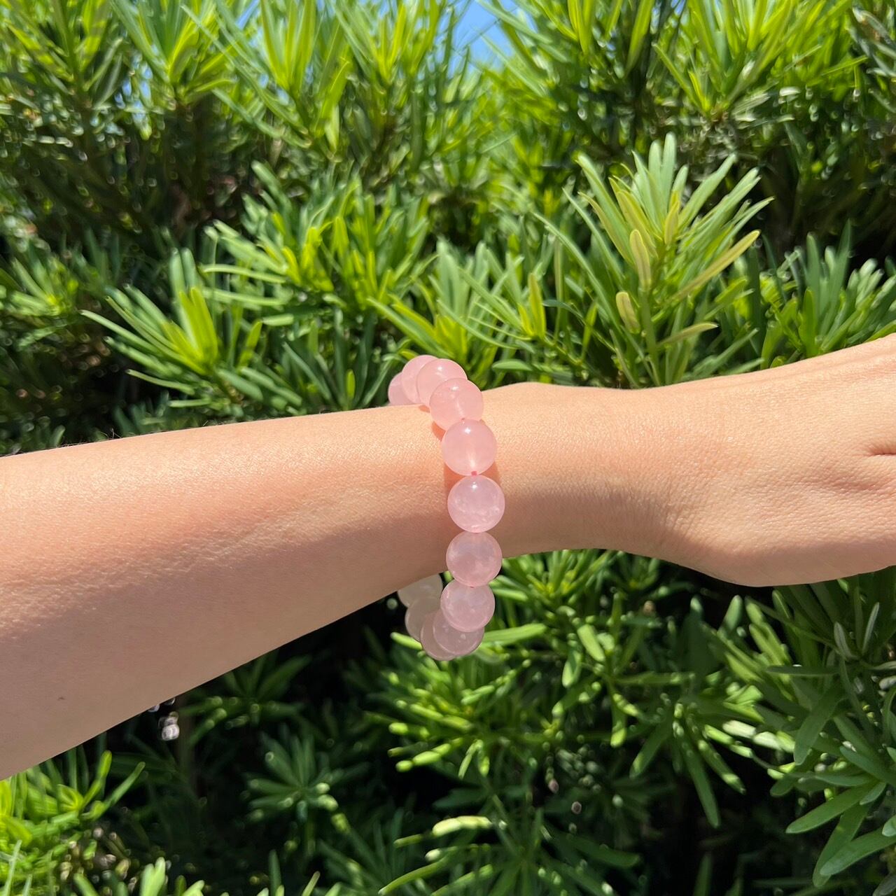 持つ人をふんわりと包み込んでくれるような優しいピンクのローズクォーツブレスレットです。