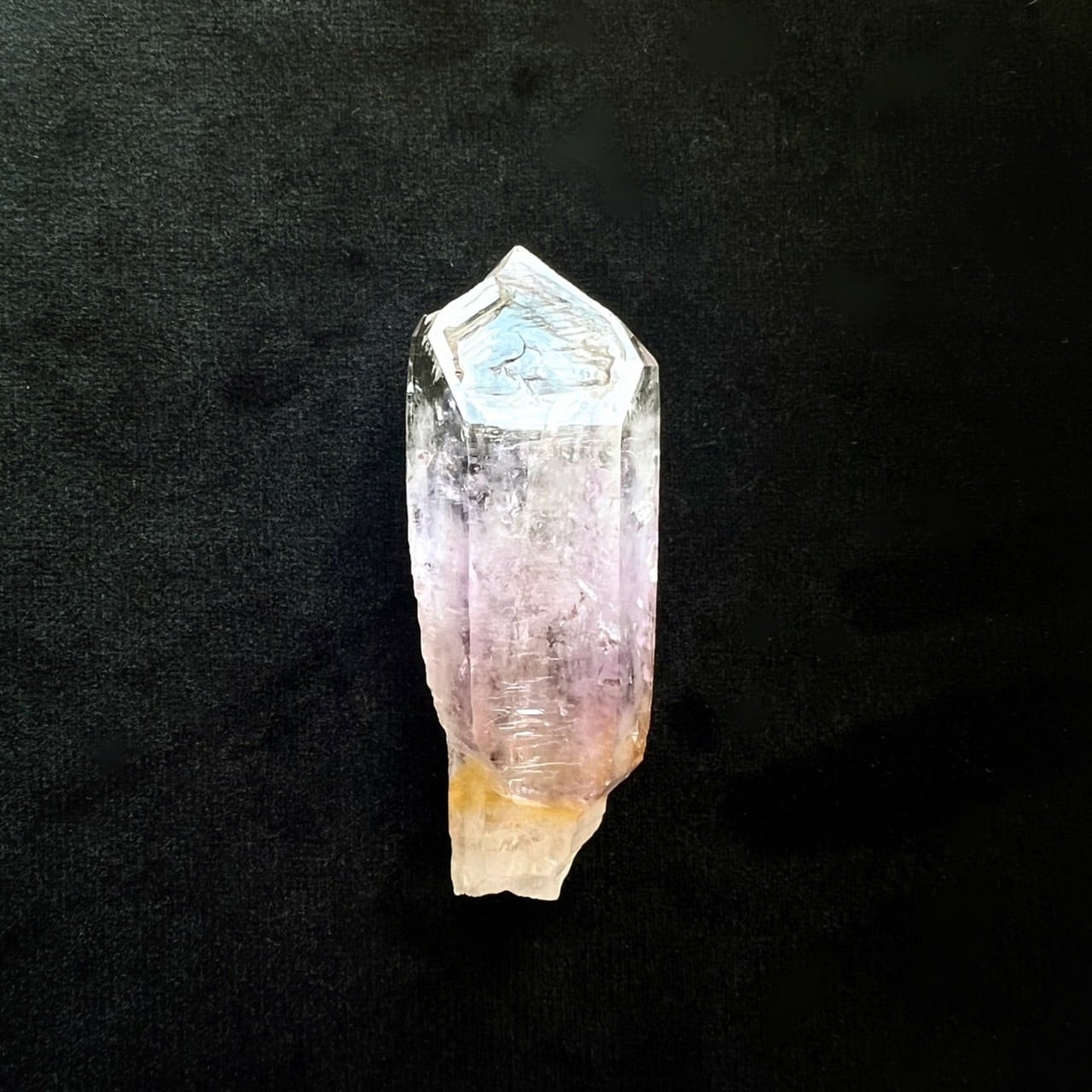通常のアメジスト水晶クラスターは、母岩と石英の上に錐面(ファセット)だけが群生しているものがほとんどですが、ベラクルスアメジストは細長い柱面のある単結晶が特徴です。
