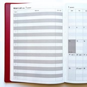 ●月間スケジュールは横書きで、一目でわかりやすいく、wish listが新しくついており、1ヶ月で達成したいこと、叶えたいこと、すべきことを書き込めます。