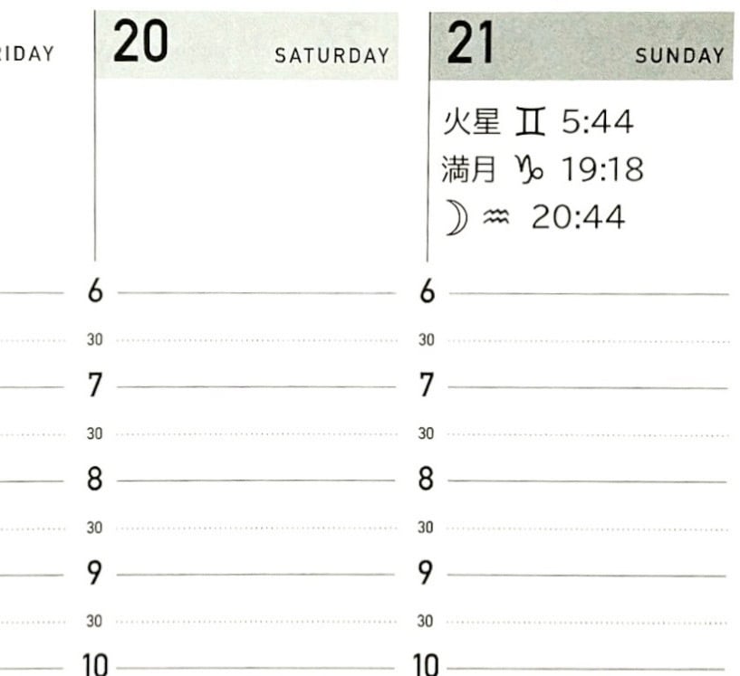 ●週間スケジュールにはすべきこと、したいことを書き込め、星の移動や月の動きが載っています。
