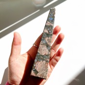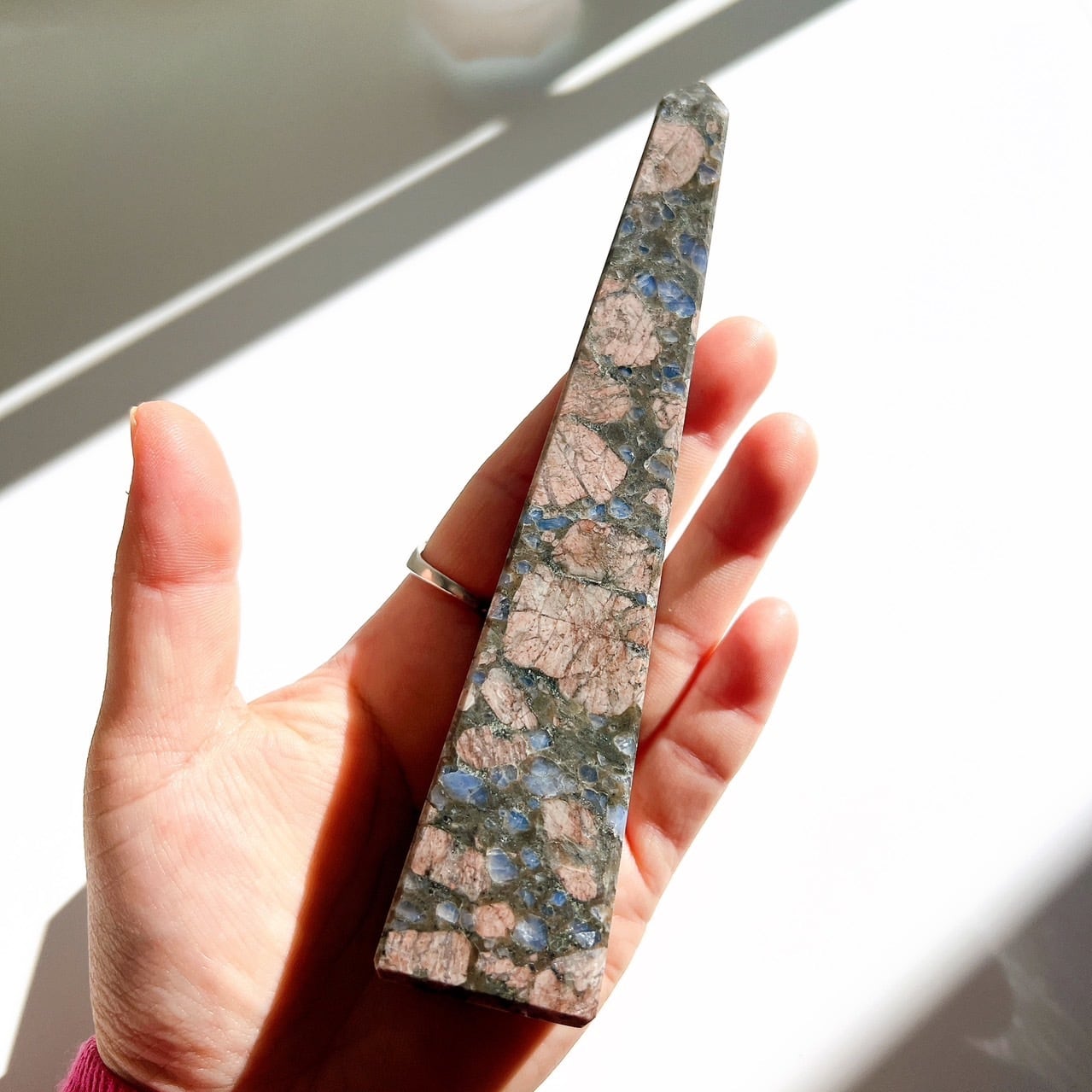 複数の鉱物がさまざまな表情を見せてくれるケセラストーンのオベリスクです。
