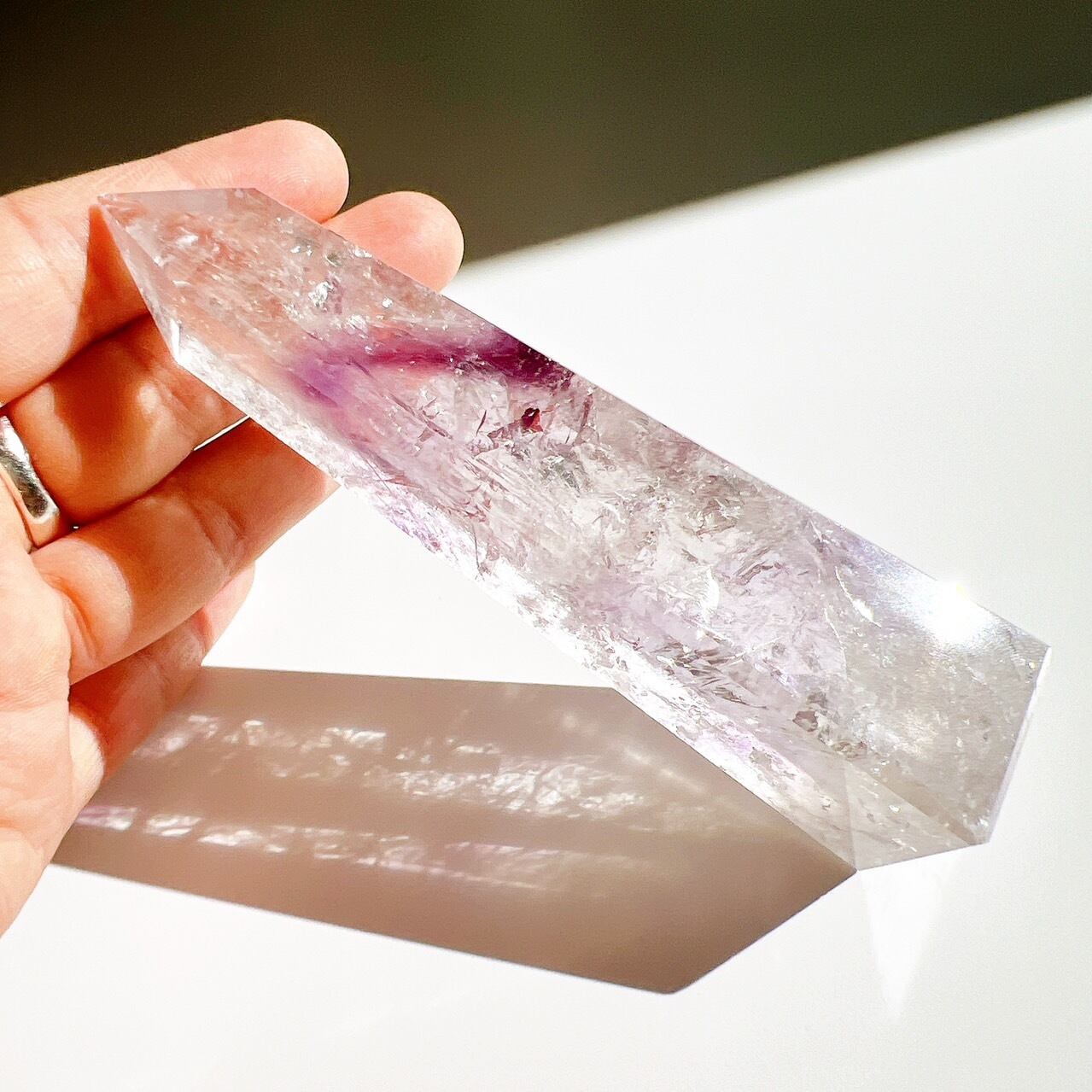 ファントムクリスタルは、地殻変動などのなんらかの原因で一度成長をとめた水晶が再び成長した時にみられるもので、クリスタルの内部に層のようにうっすらと確認できる成長痕が幻影のようなので、英語で「幻」を意味する「Phantom(ファントム)」と名づけられました。