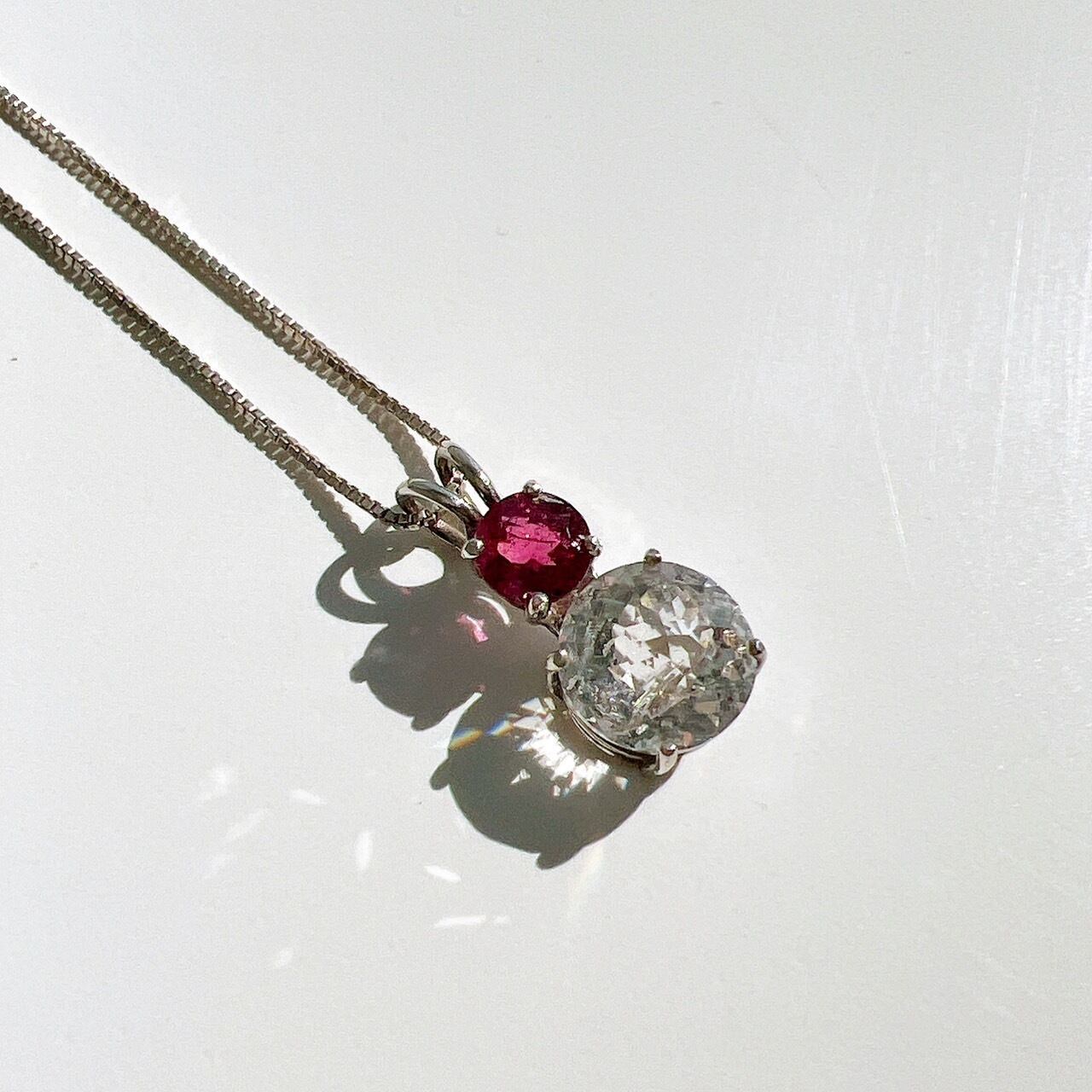 ダンビュライトミニラディエントハート&ピンクトルマリンネックレス