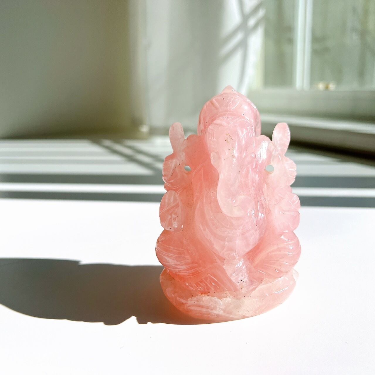 優しいピンク色のローズクォーツ・ガネーシャです。