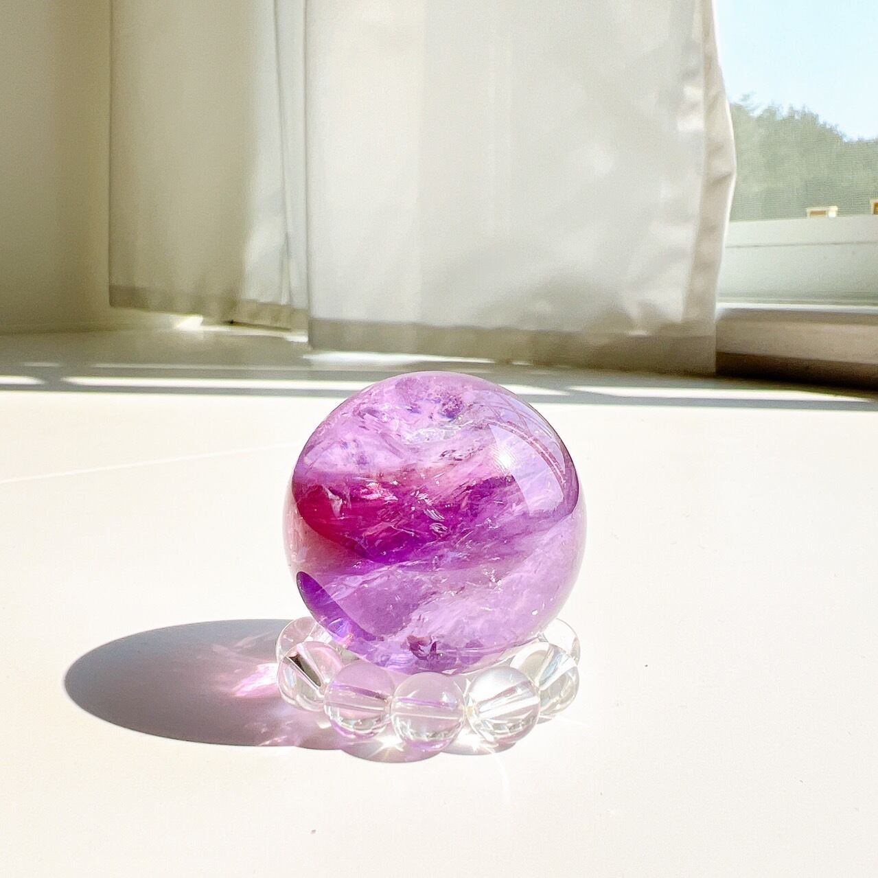 天然石の持つパワーはもちろん、目にも美しいこのアメトリン球は、玄関やリビングなどのインテリアとしても最適です。